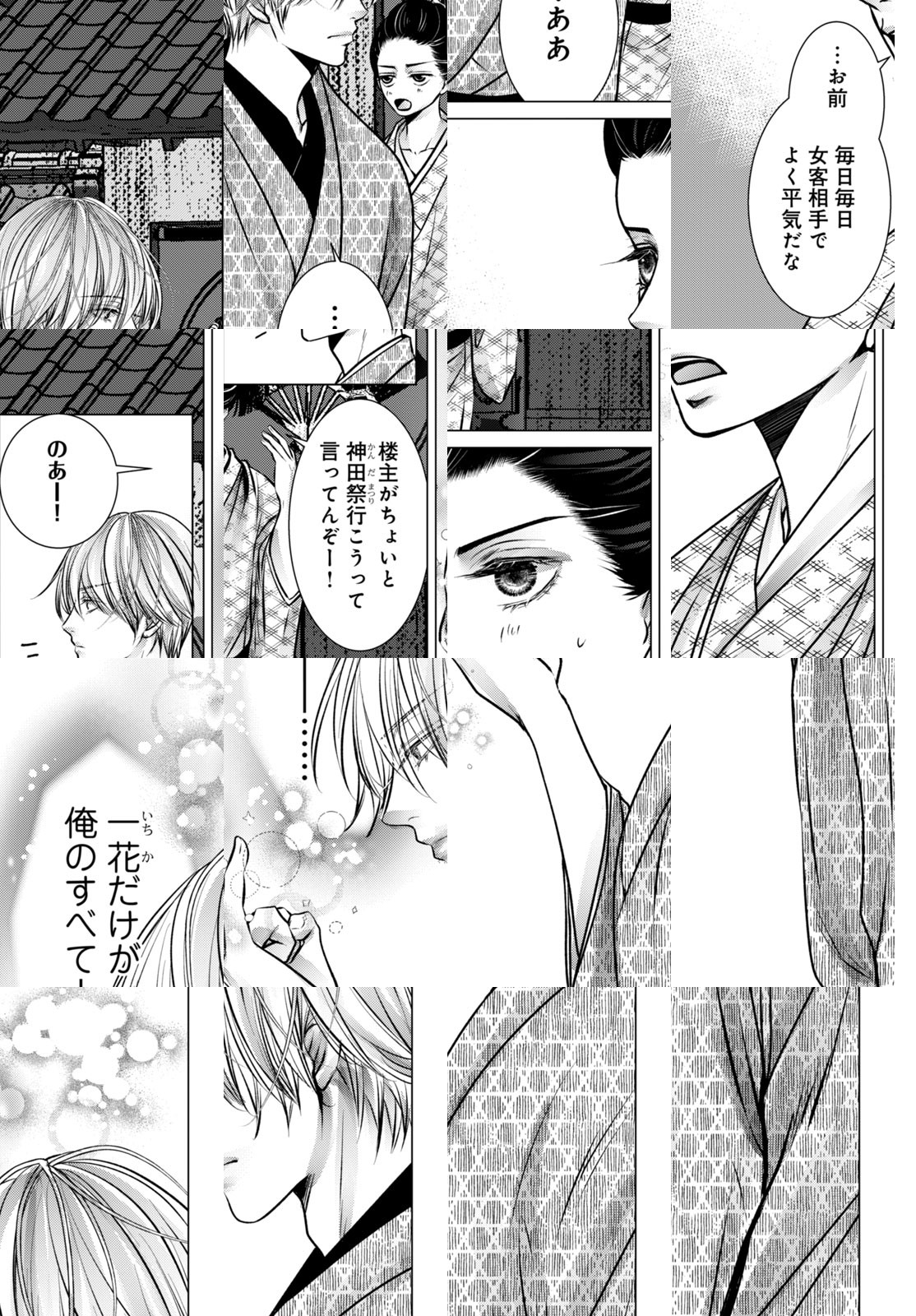 舞台は江戸時代、芳町。男が春を売る陰間茶屋・紫扇楼の跡取り娘である一花はある日、川で溺れている美少年——『のあ』を助ける。だが、彼は紫扇楼に陰間として売られる道中だった…。『あたしがのあを助けたから、のあは陰間になった』やがて一花は楼主として紫扇楼を継ぎ、のあは売れっ子陰間になる。欲望うずまく芳町で、因果の糸に絡めとられていく二人。楼主と陰間、決して結ばれてはいけない禁断の江戸情話。