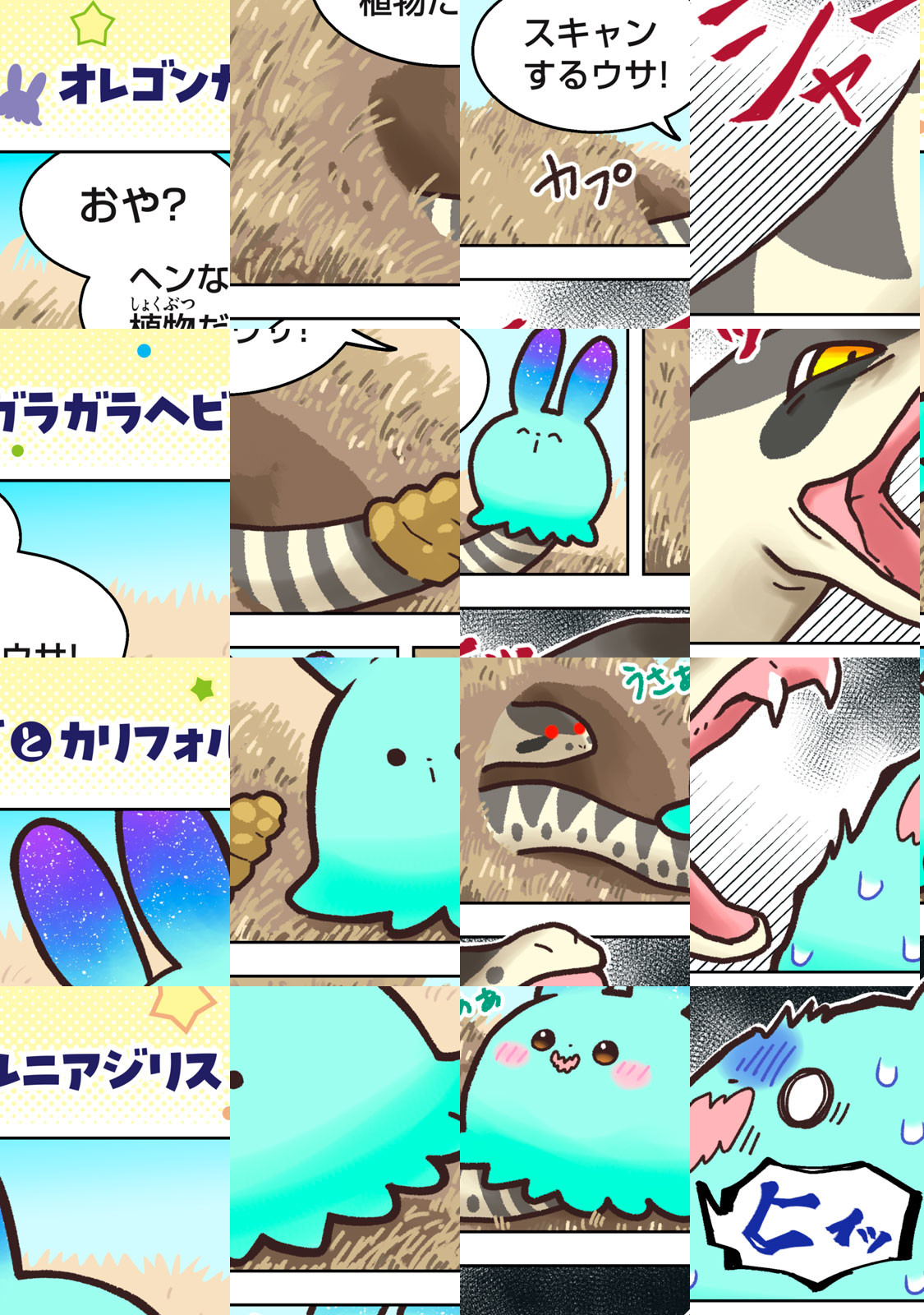 「ウサウサ」は、地球侵略のために月からやってきた(自称)エリートバニバニー人。相手の姿をコピーできる能力を使って、地球の侵略を開始した。しかし、他人のうんちで家を温める鳥に秘密基地を奪われたり、お尻の穴の匂いを嗅ぎあって決闘する動物のバトルに巻き込まれたり、なぜかいつも上手くいかなくて大ピンチに……!