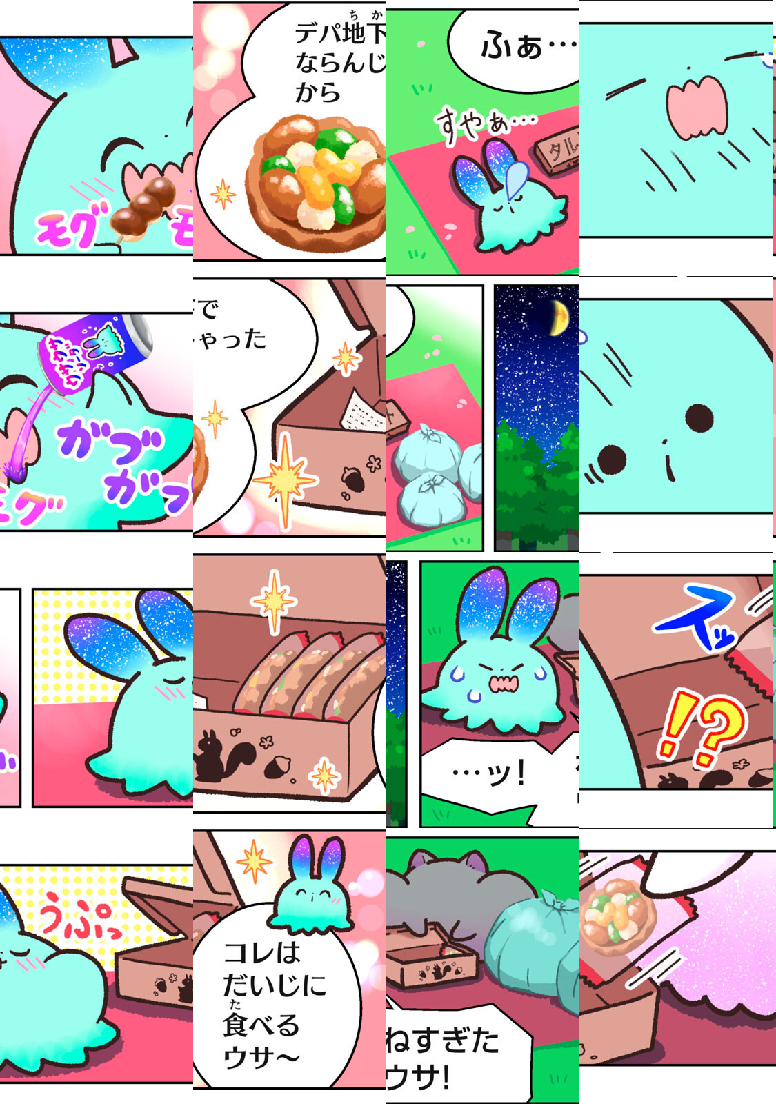「ウサウサ」は、地球侵略のために月からやってきた(自称)エリートバニバニー人。相手の姿をコピーできる能力を使って、地球の侵略を開始した。しかし、他人のうんちで家を温める鳥に秘密基地を奪われたり、お尻の穴の匂いを嗅ぎあって決闘する動物のバトルに巻き込まれたり、なぜかいつも上手くいかなくて大ピンチに……!