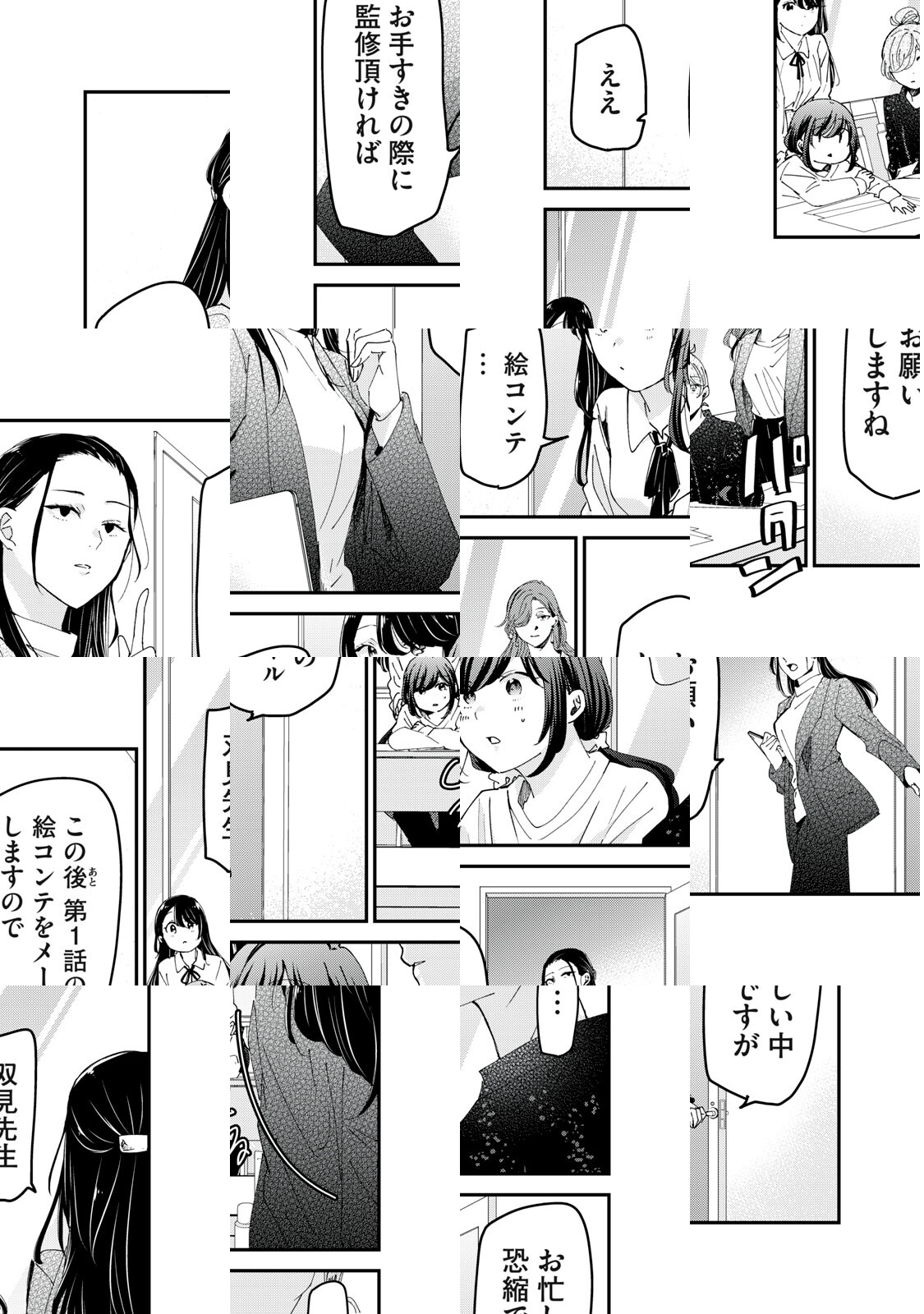 新人少女漫画家の双見奈々先生は、年上の女性担当編集の佐藤 楓さんやアシスタントの間 瑞希さんに支えられながら、時々本人曰く職業病の激しい妄想を拗らせながら、今日もお仕事中! 様々な女子を描き続ける作家が贈る、エンタメ業界を舞台にしたワーキングガールズコメディ。