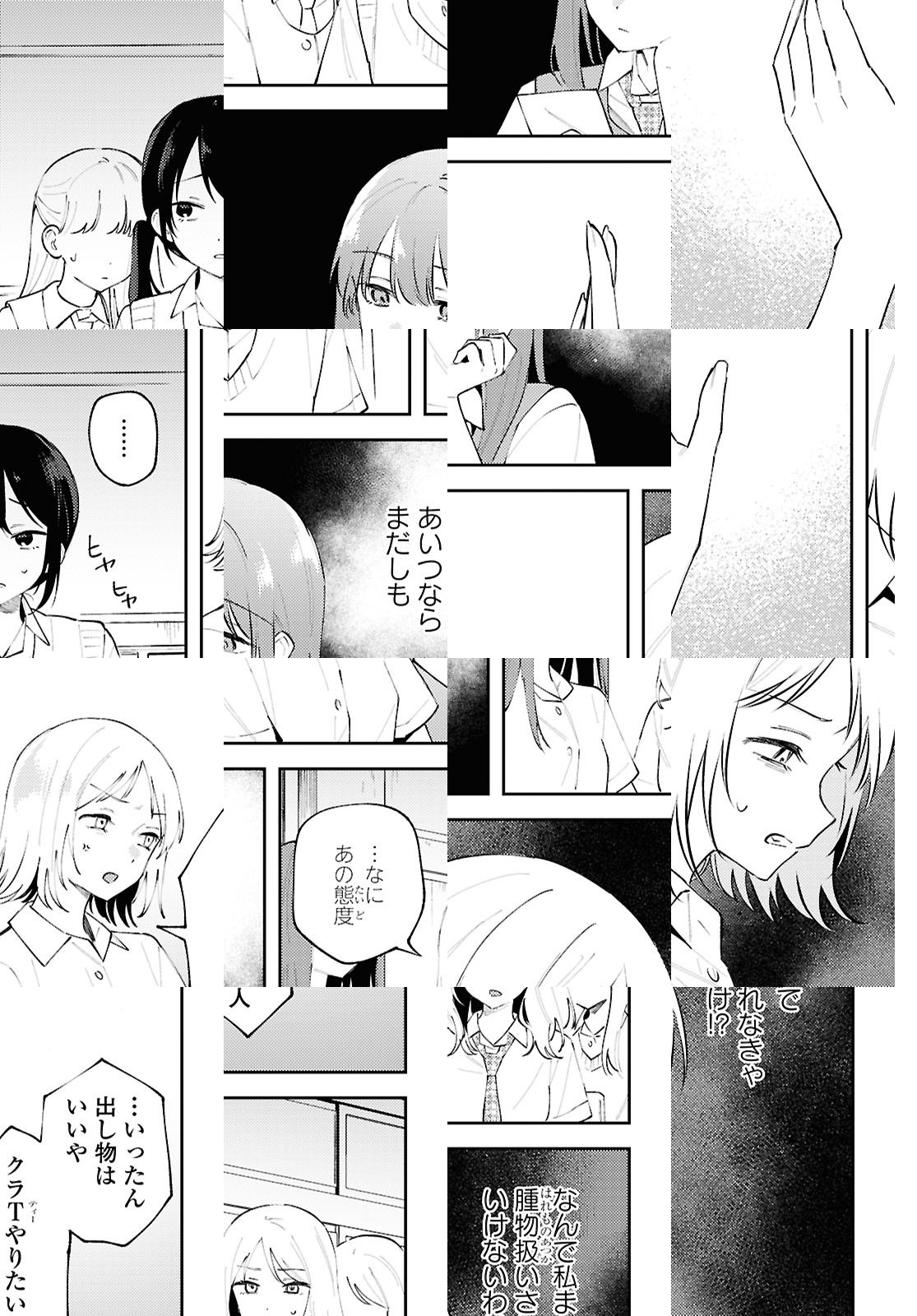 吉沢来未は、成績優秀で人当たりもいい生徒会長…というのは表向きの顔で、実際は母の束縛や教師の過度な期待に悩む日々を送っていた。ある時、不登校気味な同級生・直井を気にかけてほしいと担任教師に言われ渋々会いにいく吉沢だったが、直井は吉沢の本心を見透かしたように蔑むだけだった。ストレスも爆発寸前、吉沢は不意に万引きをしそうになる気持ちをギリギリで抑えるが、その一部始終を直井に録画されていて……逃げ場のない日常でもがく二人の、バイオレンス青春ストーリー。