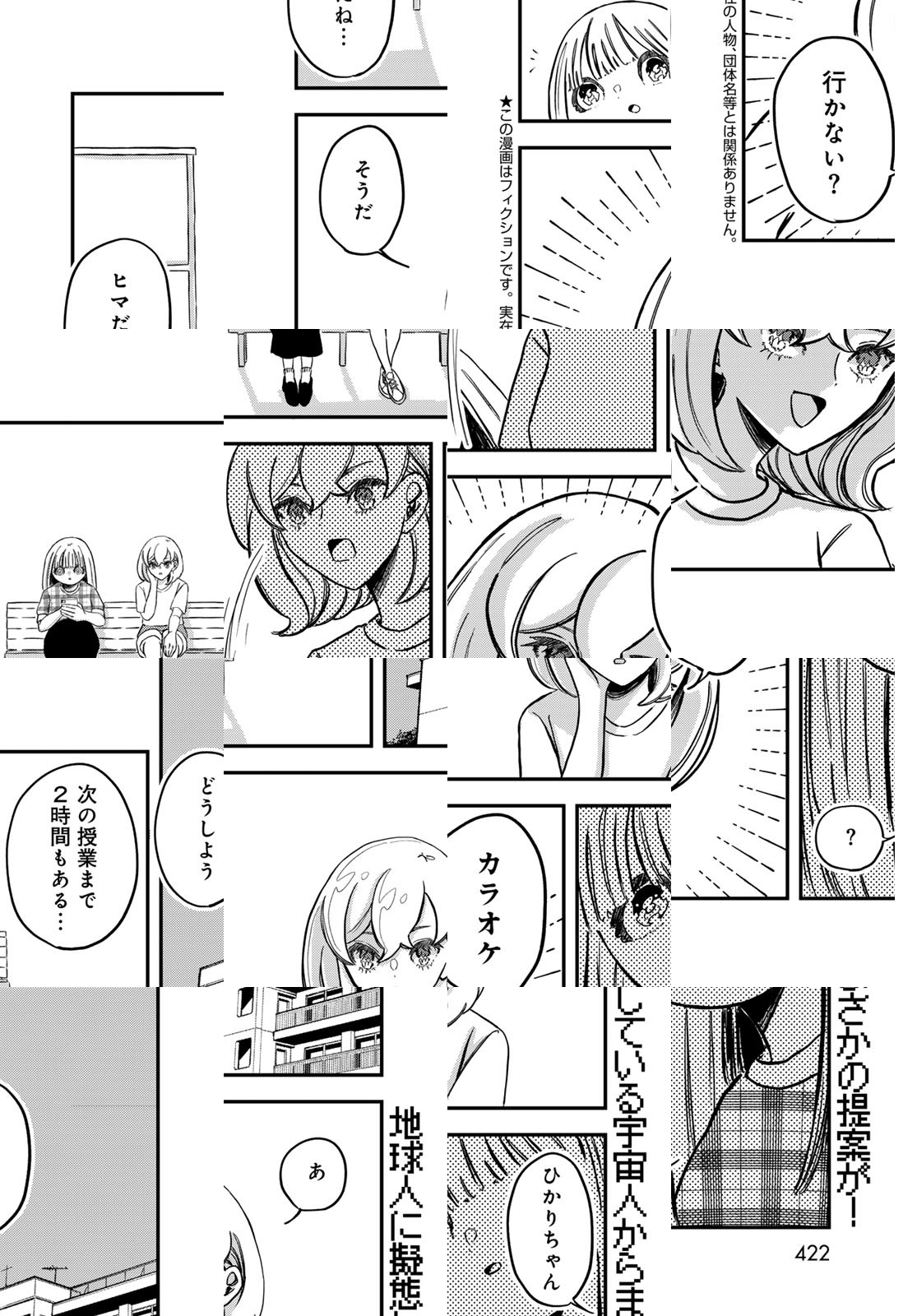 ヤツらはもう侵入している…決して誰にもすっぴんを見せずに!! 暗黒期をデリートすべくフルメイクで大学デビューしたひかりちゃんと、地球人女子に擬態して人間社会に侵入している異星人のコスモちゃん。とうぜん話がかみ合わないふたりのコンタクティ系じわじわコメディ!