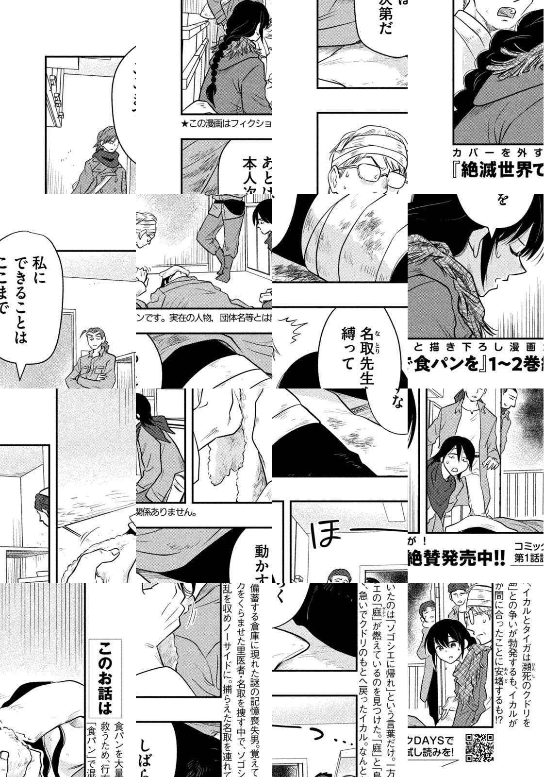 世界は滅びてしまったが、運よく(?)生き残ったイカルとアトリの姉妹。二人が生活していた「ソゴシエの里」には訳あって戻れない。退路を断った二人はサバイバル生活に転じるが、生きることは食べること。食べ物がないと未来はない。そんな時に出くわした、食パンの大量備蓄。喜びも束の間、二人にとって食パンは未知のもの。食べ方すらわからない姉妹の、食パンと格闘する旅が始まる!