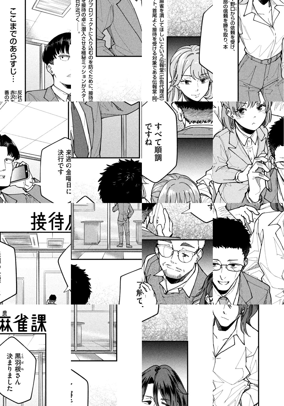 風祭建設に入社した新入社員・スズメが、配属されたのは、「接待麻雀課」!? 「賭け麻雀は認知症予防になる」との研究報告を元に、賭け麻雀が合法化された世界で、企業戦士たちが社運を懸け、麻雀バトルを繰り広げていた!小説家・新川帆立氏の『令和その他のレイワにおける健全な反逆に関する架空六法(集英社刊)』収録の『接待麻雀士』から生まれた近未来ビジネスサスペンス開幕!
