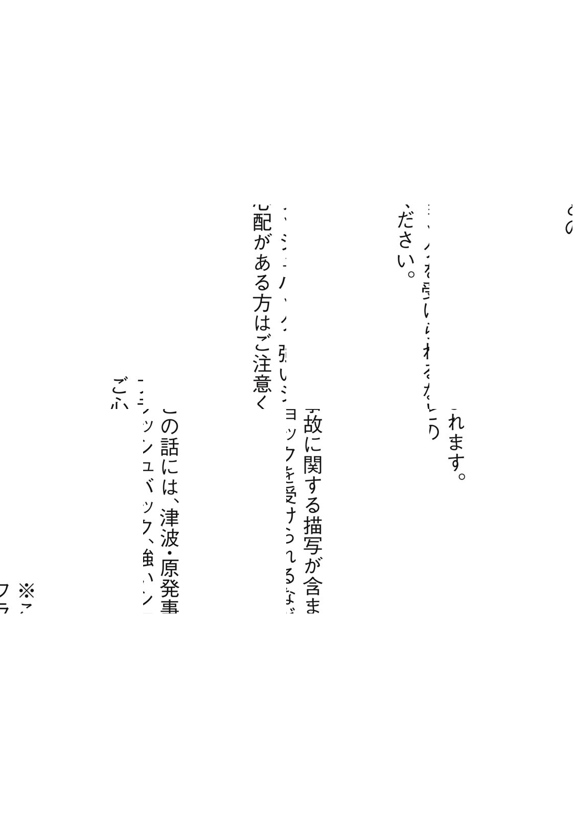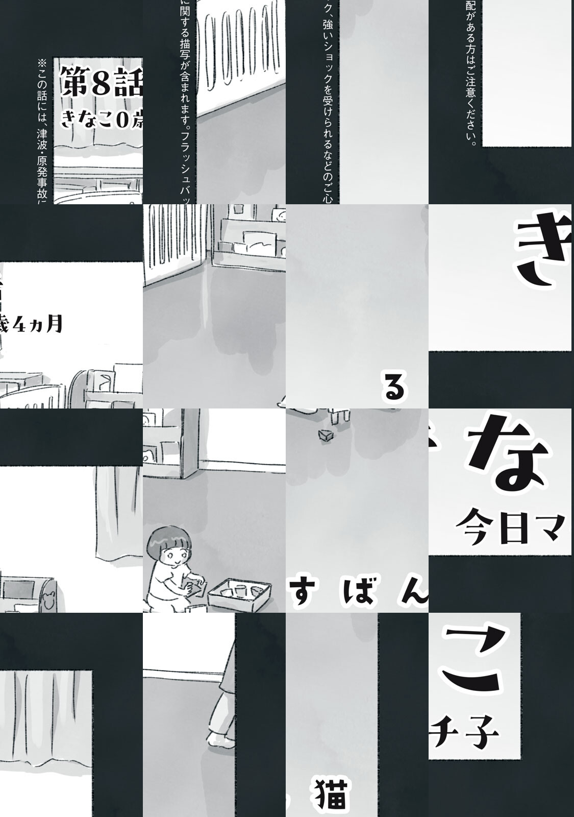 人懐っこい赤ん坊猫のきなこ。海辺の家で暮らす小学1年生のここな。ある日、突然起きた地震と津波と原発事故によりその土地に取り残され、家族と離れ離れになった彼らは、家族の帰りを待って“おるすばん”を続けている。そして故郷を失って別の場所で生きる少女・さきの願い。それぞれの思いを乗せて時間が過ぎていく。失われてしまったもの、ずっとそこにあるもの……「猫の一生」を通して描く震災の物語。※この話には、津波に関する描写が含まれます。フラッシュバック、強いショックを受けられるなどのご心配がある方はご注意ください。