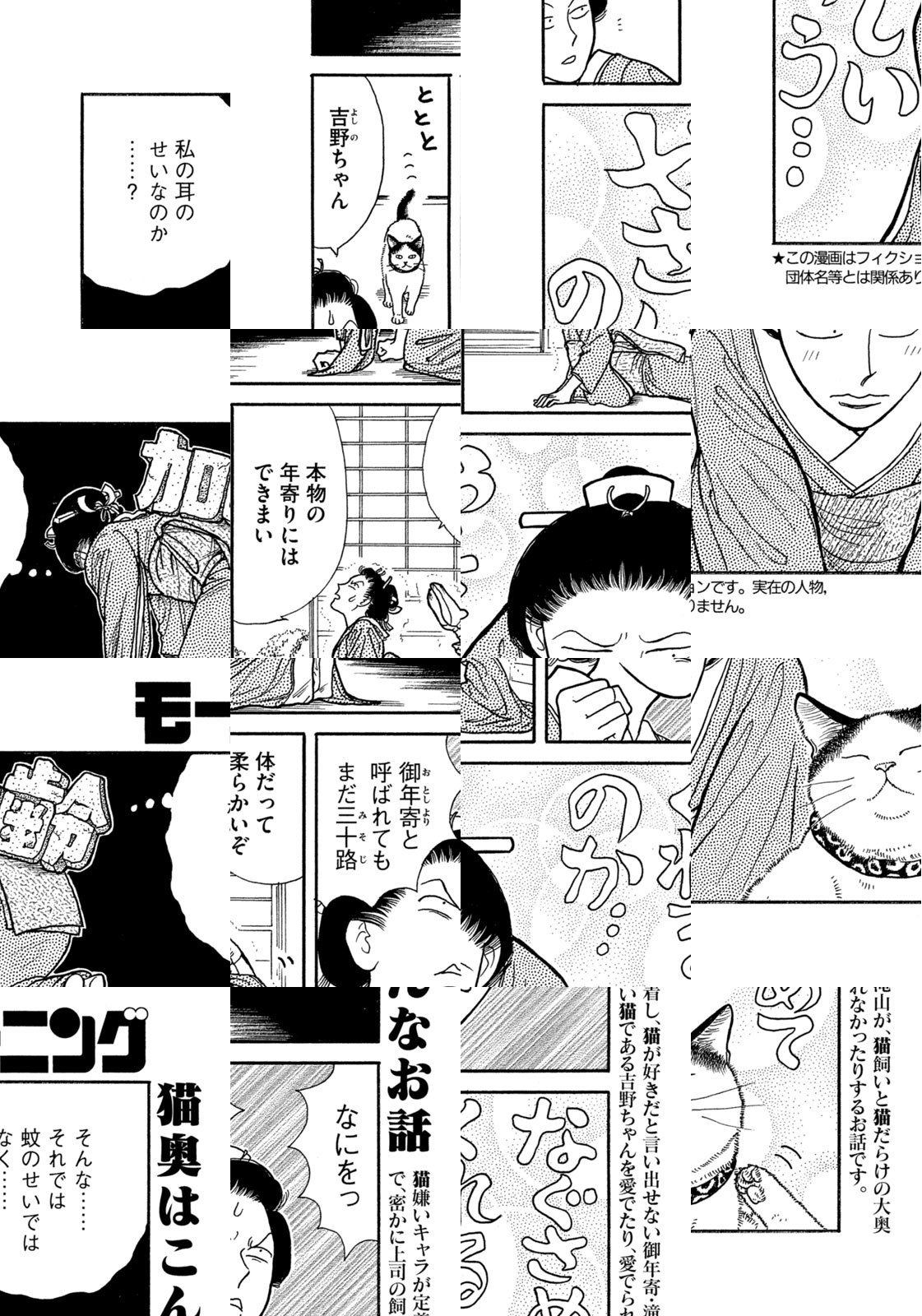 江戸時代。大奥に仕える女性たちの多くは、生涯独身であった。そんな彼女たちが、持てあました時間と愛情を注いだ対象、それは――にゃんと、ネコだった!? 大奥に暮らすオンナとネコの日常を描くほのぼのショート!