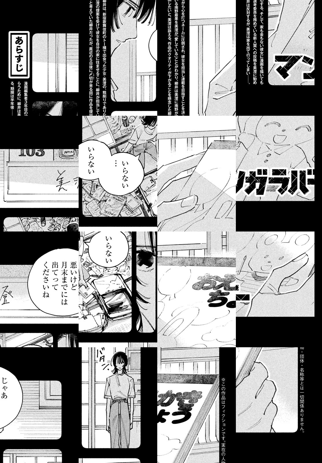 漫画編集者3年目の柳井(やない)は、新宿歌舞伎町のトー横で取材中に、少女・美澄(みすみ)に「マンガを見てほしい」と声を掛けられる。いままで堅実に作品立ち上げを行ってきた柳井だったが、美澄の粗削りでありながら心を打つネームの圧倒され、彼女を担当し連載を目指すことを決心する。だが、彼女には家も金もない……。若い作家と編集者が、作品で世界に感動の鉄槌を下すべく、奔走する下剋上の物語。