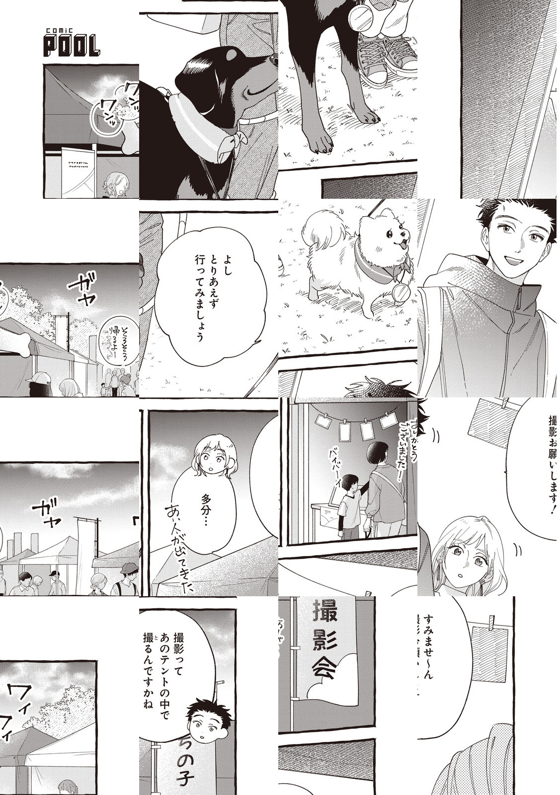 見た目も性格も正反対な男女と2匹の犬が、散歩中に出会うーーー。もふもふ小型犬 × びびりな彼と、こわもて大型犬 × パワーな彼女…画面いっぱいのギャップ萌えにほっこりすること間違いなしっ♪