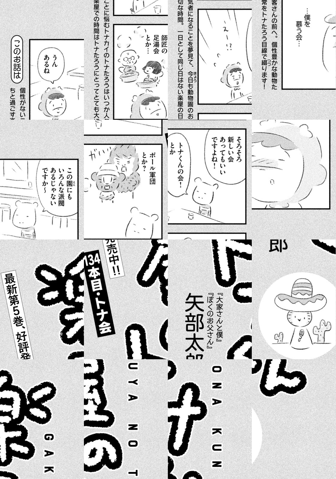 先輩にはいびられ、後輩には舐められ、お客さんには気づかれない主人公・トナカイのトナたろう、ちょっとガサツでデリカシーのないスカンクのポール先輩、元気すぎるお猿のアーコ、大人気のパンダくんなど、どこか見たことあるような動物たちの楽屋での悲喜こもごもなアニマル賛歌。自分の才能や“動物関係”に今日も悩みながら切磋琢磨する動物たちの舞台裏を覗いてみませんか?