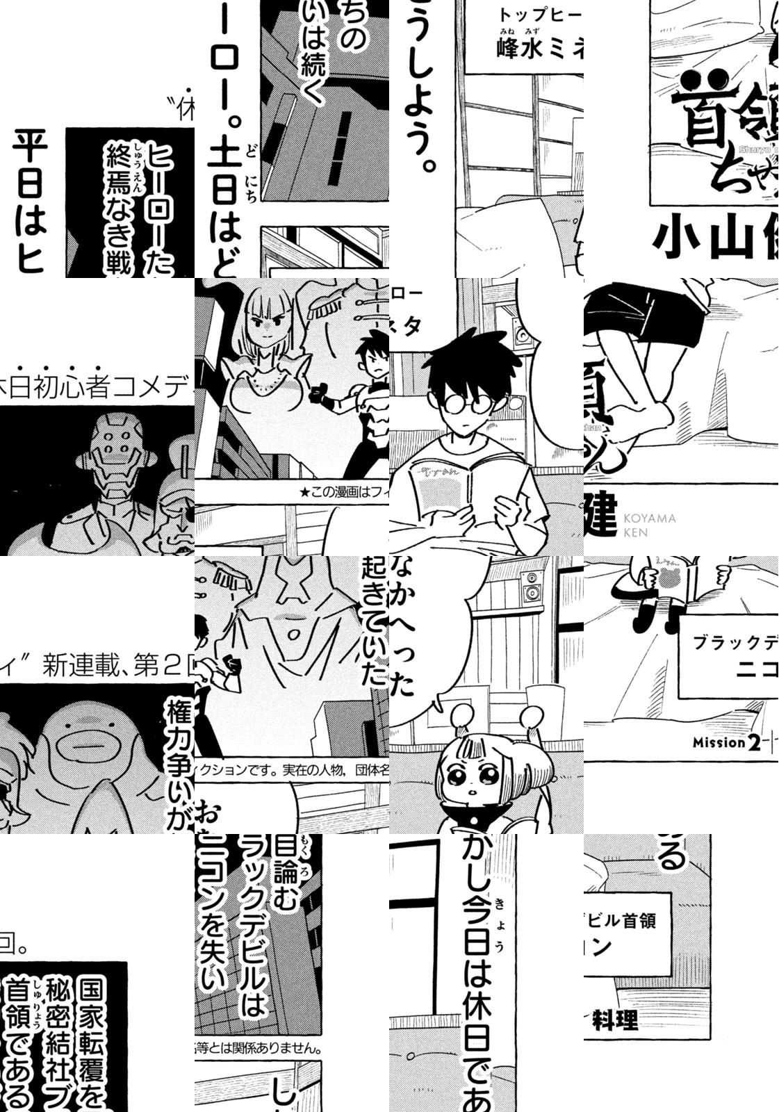 国家転覆を目論む秘密結社「ブラックデビル」に、日本は侵略されていた。トップヒーロー・峰水ミネタは、街の平和を守るべく“職業ヒーロー”として、敵に立ち向かう日々。しかし、とある事件をきっかけに「ブラックデビル」は完全週休2日制を導入。よってヒーローも同じ勤務形態に。仕事人間の峰水は、“空白の2日間”に大混乱をするが、その混乱にはもう一つの理由があって──。『生理ちゃん』の小山健が贈る、“休日初心者コメディ”!!