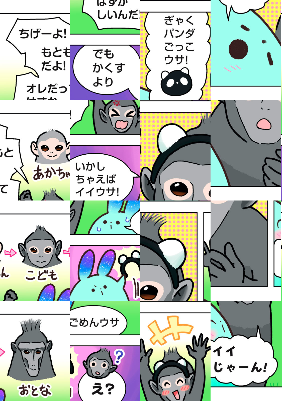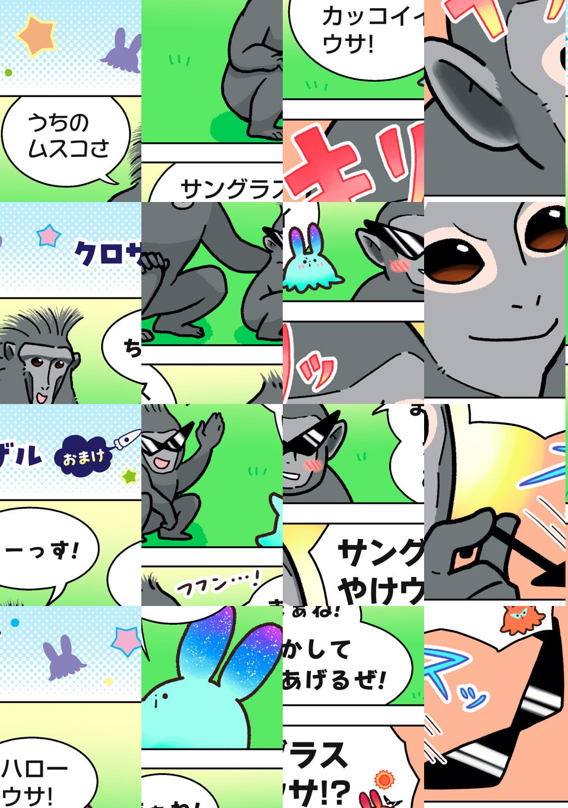 「ウサウサ」は、地球侵略のために月からやってきた(自称)エリートバニバニー人。相手の姿をコピーできる能力を使って、地球の侵略を開始した。しかし、他人のうんちで家を温める鳥に秘密基地を奪われたり、お尻の穴の匂いを嗅ぎあって決闘する動物のバトルに巻き込まれたり、なぜかいつも上手くいかなくて大ピンチに……!