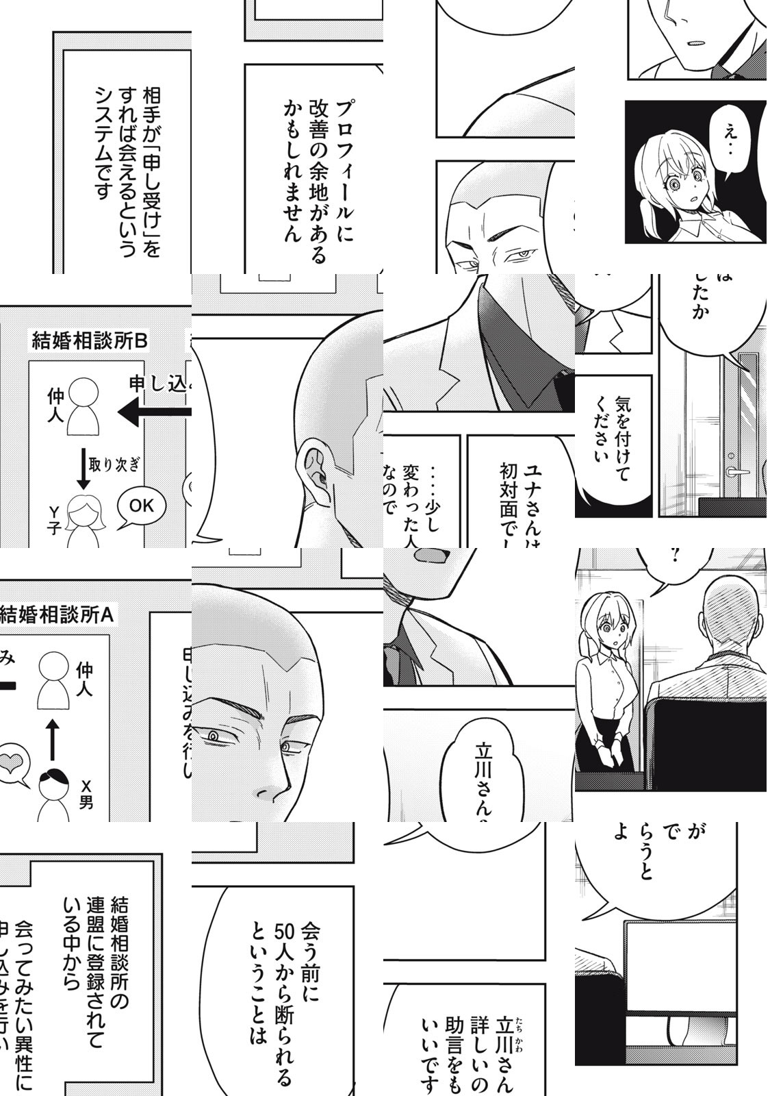 「あなた、本当に結婚したいのですか?」悩める相談者たちにズバズバ本音で斬り込む坊主でコワモテの結婚アドバイザー柏木は、「人を幸せにする仕事がしたい」と就職してきた新入社員の町田ユナたちとともに、結婚を目指す人たちに気づきを与え、成長させていく。どうすれば結婚できるのか? どうすれば幸せになれるのか? 超リアルな令和の結婚相談所お仕事漫画!