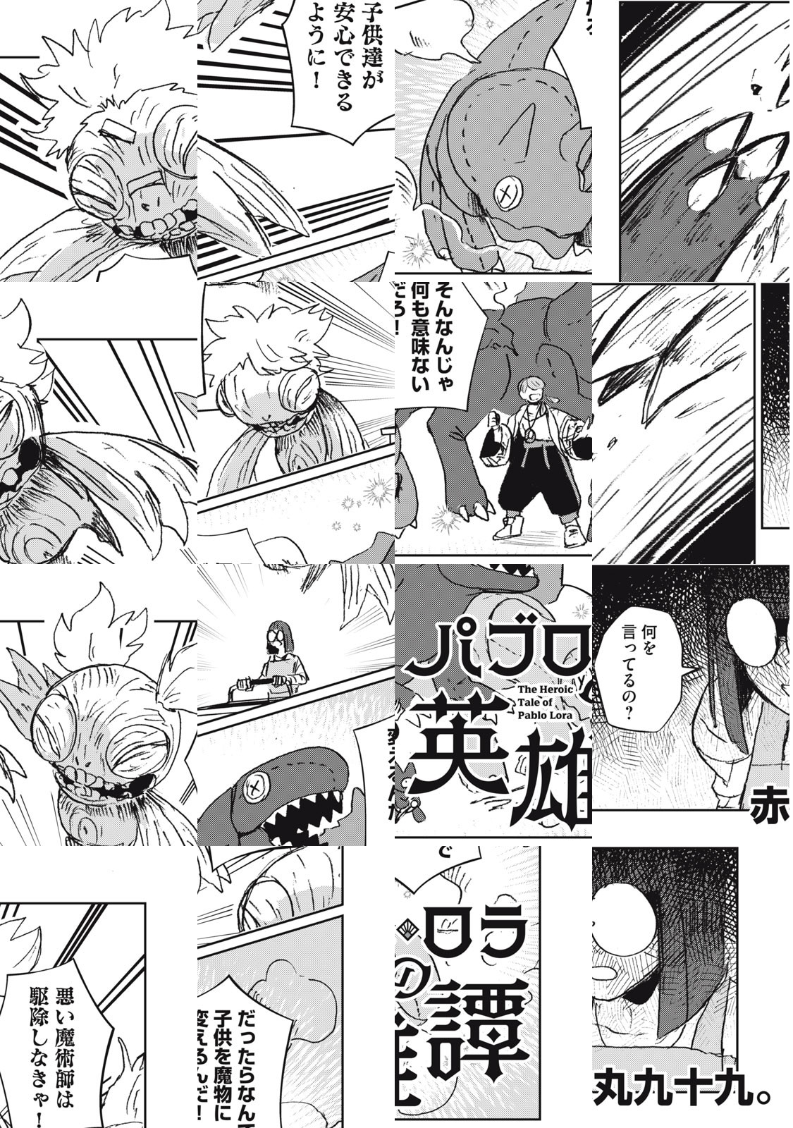 1000年前人類を恐るべき魔物から救った伝説の魔術師――の末裔パブロは、ぬいぐるみの召喚しかできない落ちこぼれ。家訓である魔術の鍛錬を放棄して宙ぶらりんな毎日を送っていたパブロの日常は魔物の王“施しの獣”の復活で一変する。一般人を襲う魔物に立ち向かうべくパブロが召喚したのは、かつて先祖カロ・ロラと共に闘った伝説の狩人ハンク‥‥かもしれない男!? まだ英雄じゃない2人の魔物狩り冒険譚!