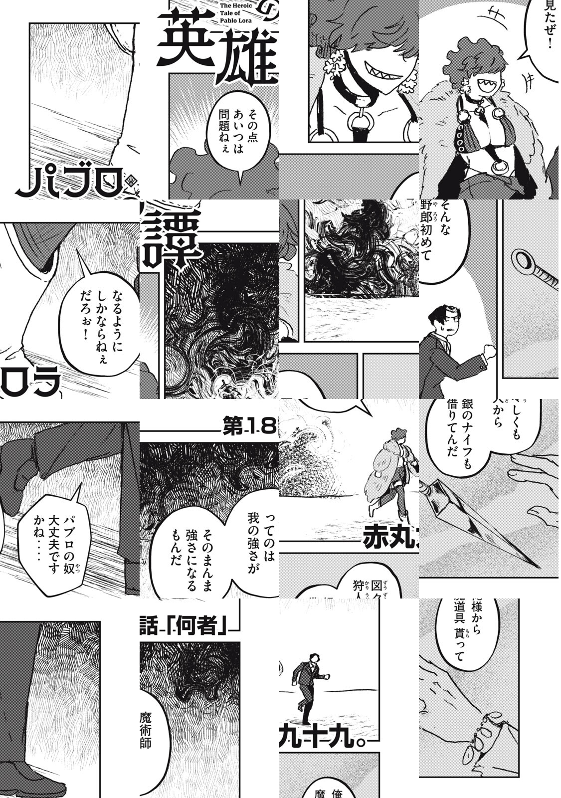 1000年前人類を恐るべき魔物から救った伝説の魔術師――の末裔パブロは、ぬいぐるみの召喚しかできない落ちこぼれ。家訓である魔術の鍛錬を放棄して宙ぶらりんな毎日を送っていたパブロの日常は魔物の王“施しの獣”の復活で一変する。一般人を襲う魔物に立ち向かうべくパブロが召喚したのは、かつて先祖カロ・ロラと共に闘った伝説の狩人ハンク‥‥かもしれない男!? まだ英雄じゃない2人の魔物狩り冒険譚!