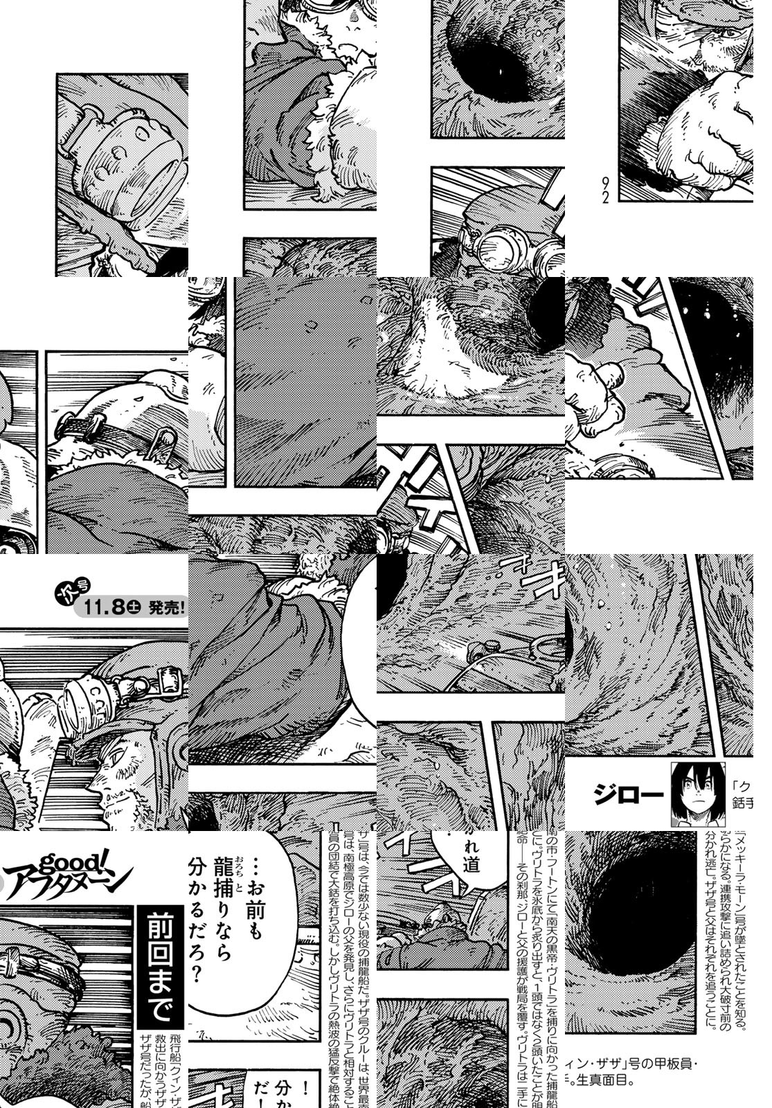 龍を追って、世界の空を往く捕龍船『クィン・ザザ号』。大物を捕まえれば一獲千金、獲りたての肉も食べ放題。でも、失敗したらもちろんお陀仏。空と龍に魅せられた乗組員たちの大冒険の旅&世界グルメ紀行!
