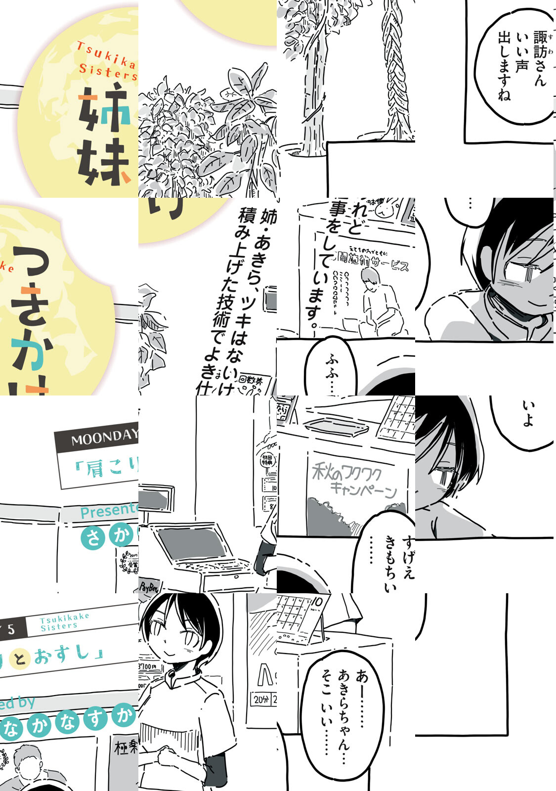 ハイスペックなのにことごとく「外す」残念美女の姉、あきら(21)。そんな姉の力になりたいクールな妹、のぞみ(15)。父親の残した借金で底辺生活を送っている姉妹だが、満月の日はのぞみの能力で「遊ぶ」ことを決めている。その能力とは「何かに『当たる』数字が思い浮かぶ」もの。この数字で一攫千金……は外してしまうけれど、それでも誰かは幸福になる。かくして町内を少しずつ幸福で満たし、いずれは月まで届く……かもしれない、ツキかけ姉妹の愛しき日々!
