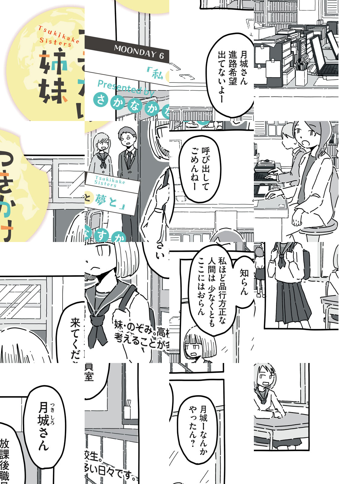ハイスペックなのにことごとく「外す」残念美女の姉、あきら(21)。そんな姉の力になりたいクールな妹、のぞみ(15)。父親の残した借金で底辺生活を送っている姉妹だが、満月の日はのぞみの能力で「遊ぶ」ことを決めている。その能力とは「何かに『当たる』数字が思い浮かぶ」もの。この数字で一攫千金……は外してしまうけれど、それでも誰かは幸福になる。かくして町内を少しずつ幸福で満たし、いずれは月まで届く……かもしれない、ツキかけ姉妹の愛しき日々!