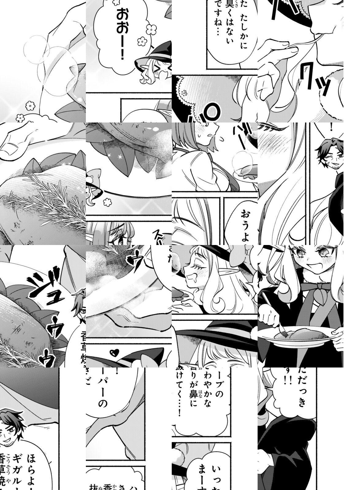 エルフの里の守り人・ララートは大魔法の代償に体が縮むと同時に日本のぐうたらOLだった前世の記憶を思い出す。そんな中、欲に負けて肉食禁忌の里の掟を破ってしまったララートは里を追放されてしまい、世話焼き弟子ともふもふ精霊獣を連れて旅に出ることに! 美味しいモンスターを求めてぐうたらエルフの気ままな冒険が始まる!