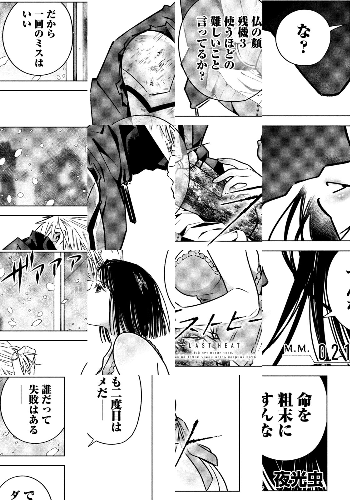 『クロウマン』夜光虫最新作。地球に六つの核が落ちてから156年後──。機械に囲まれた終末世界で、2人の兄妹は人類の生き残りを探していた。最後の刻が近づく中、一欠片の希望は見つかるのか。終わった世界の片隅で、最後の熱が煌めく新時代SF───開幕!!