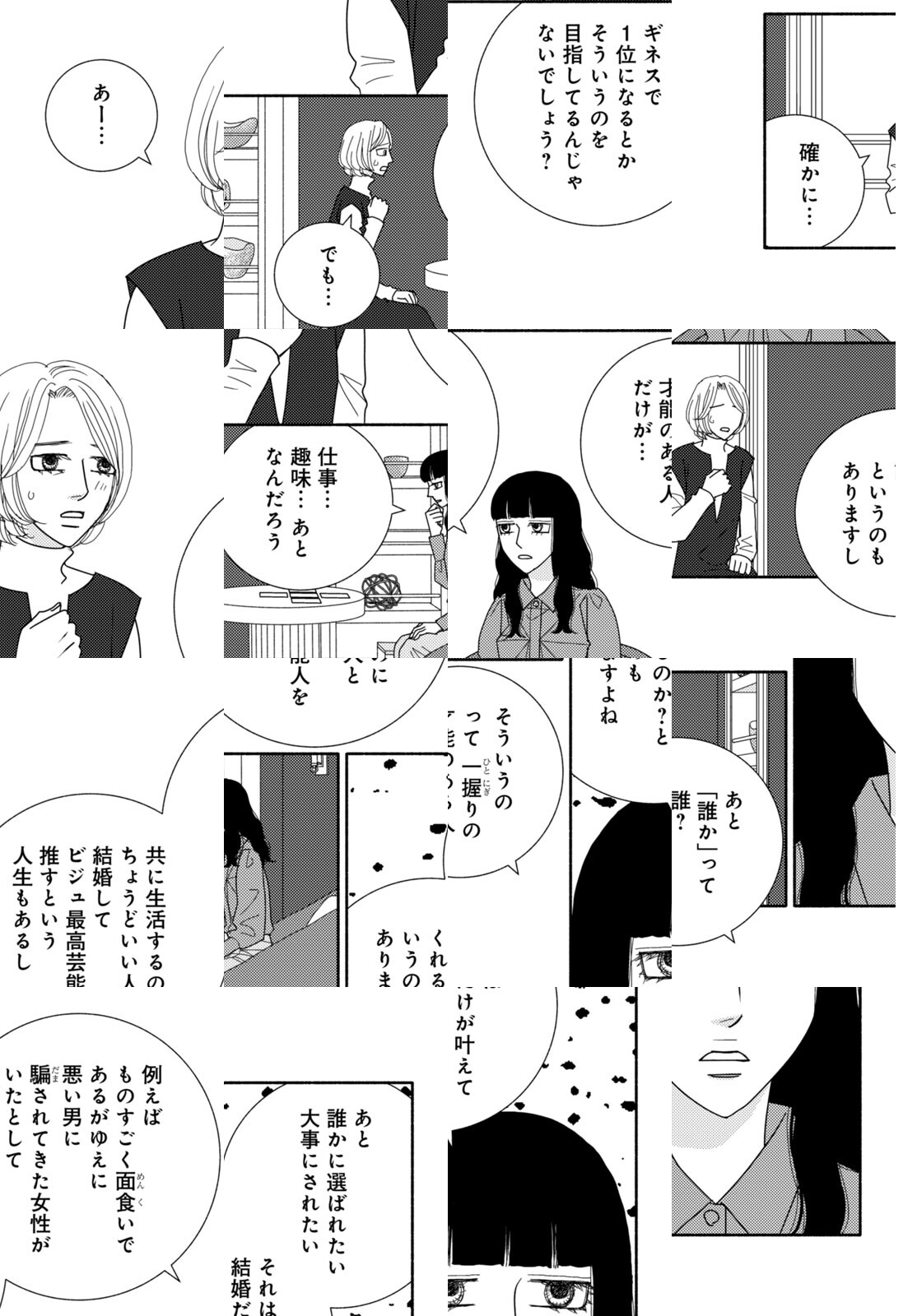 古い洋館にひとりで住むお金持ち黒江と、いきなり仕事も恋も失った江間。ふたりが偶然出会い、とけたりとけなかったりする謎の数々と、生まれる最高のパフェたち。海野つなみが描く、対照的な女ふたりの物語ー。“仲良くなくても一緒にいれます”
