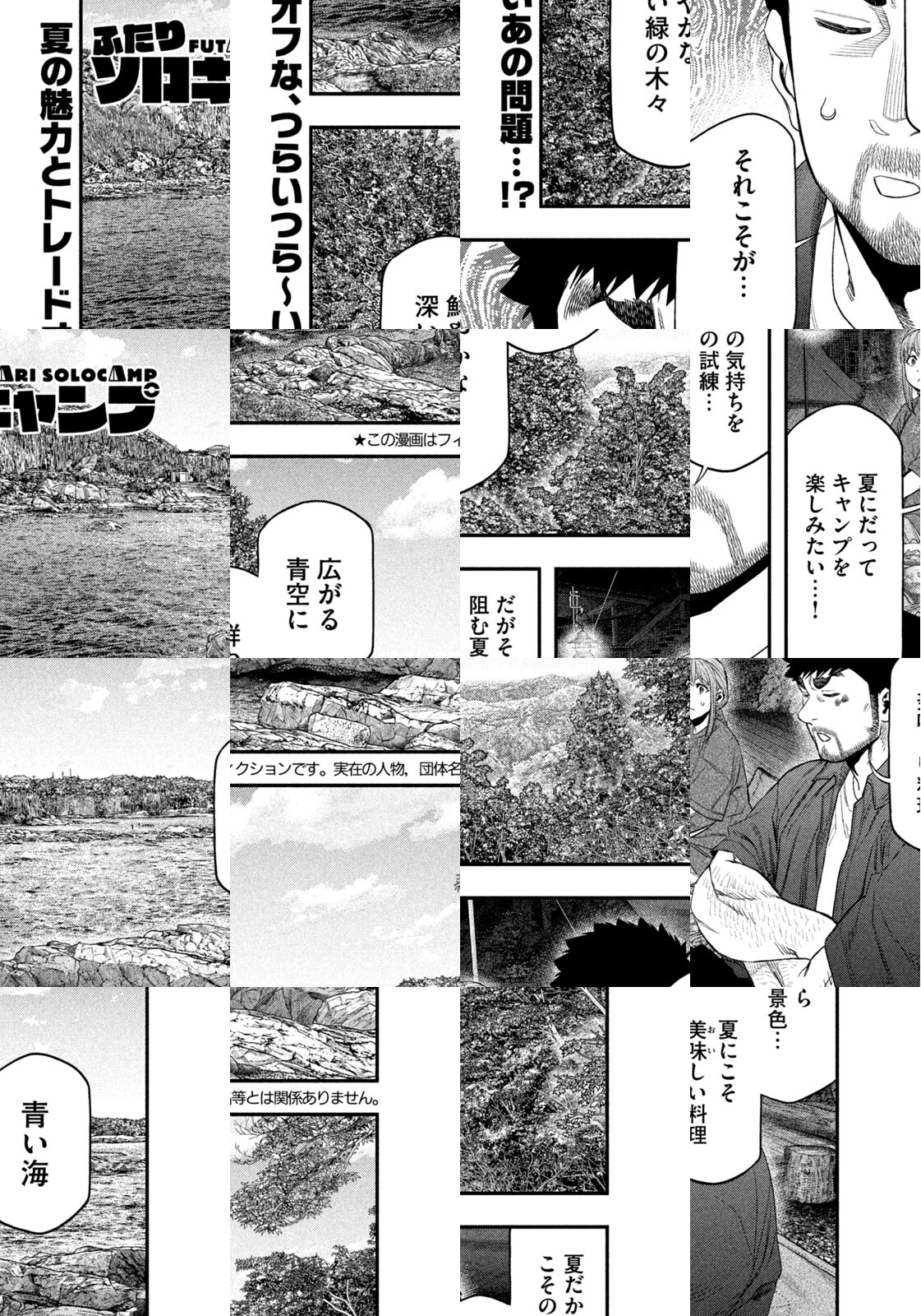 オレは樹乃倉厳。34歳。趣味はキャンプ。独りで野営する生粋のソロキャンパー。車はいらない。電車を乗り継ぎ、最後はバスで山に入る。自然を愛してる、火を木を水を土を。それと同等に孤独な自分の生き方を愛している―ーー。…な俺が! ひょんなことから草野雫20歳という小娘に出会い、ふたりでソロキャンプをするはめに!