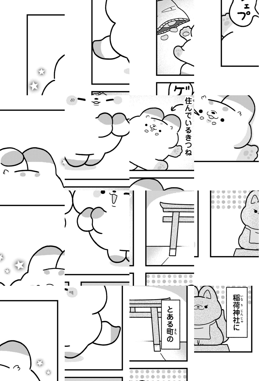 さびれた神社に住んでいる、ふわふわもちもちな双子のきつねちゃん。人でいっぱいになる日を夢見て頑張ってみるものの…やっぱりめんどくさい。そんなぷりち〜でぐ〜たらなきつねたちのゆる〜い日常4コマ。