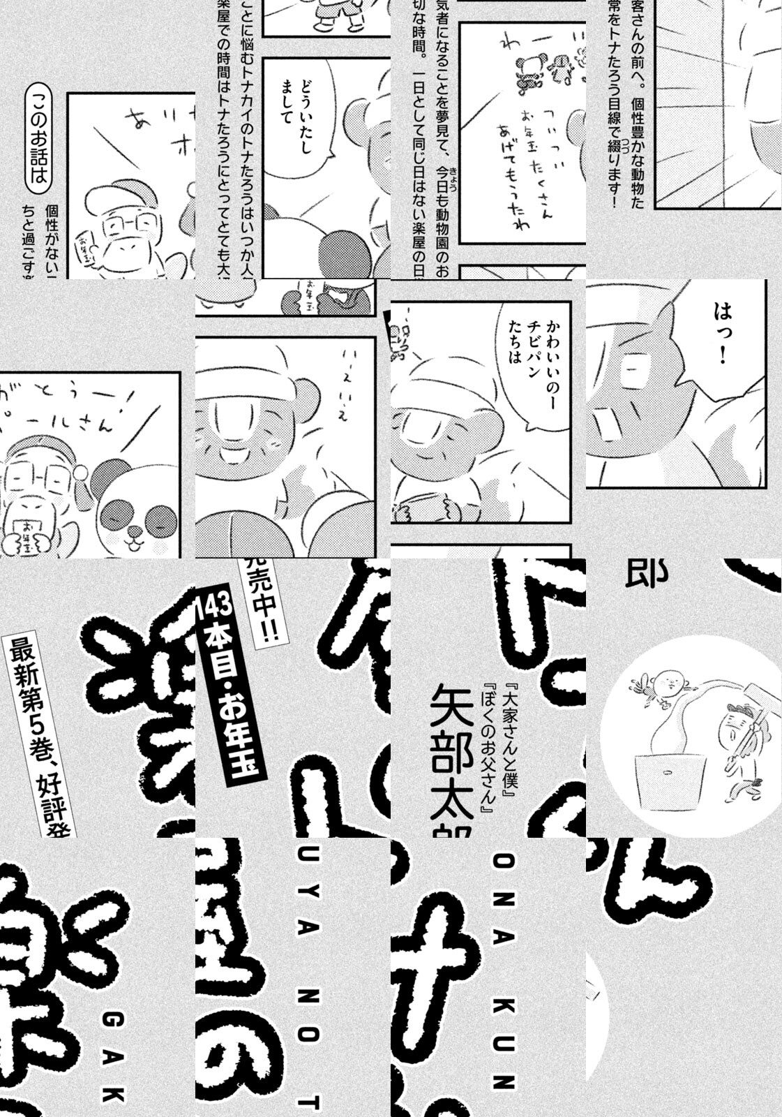 先輩にはいびられ、後輩には舐められ、お客さんには気づかれない主人公・トナカイのトナたろう、ちょっとガサツでデリカシーのないスカンクのポール先輩、元気すぎるお猿のアーコ、大人気のパンダくんなど、どこか見たことあるような動物たちの楽屋での悲喜こもごもなアニマル賛歌。自分の才能や“動物関係”に今日も悩みながら切磋琢磨する動物たちの舞台裏を覗いてみませんか?