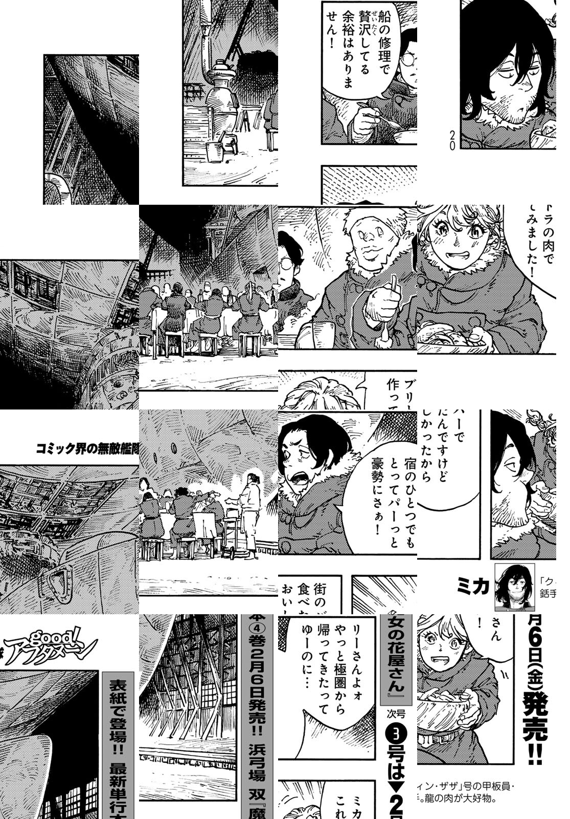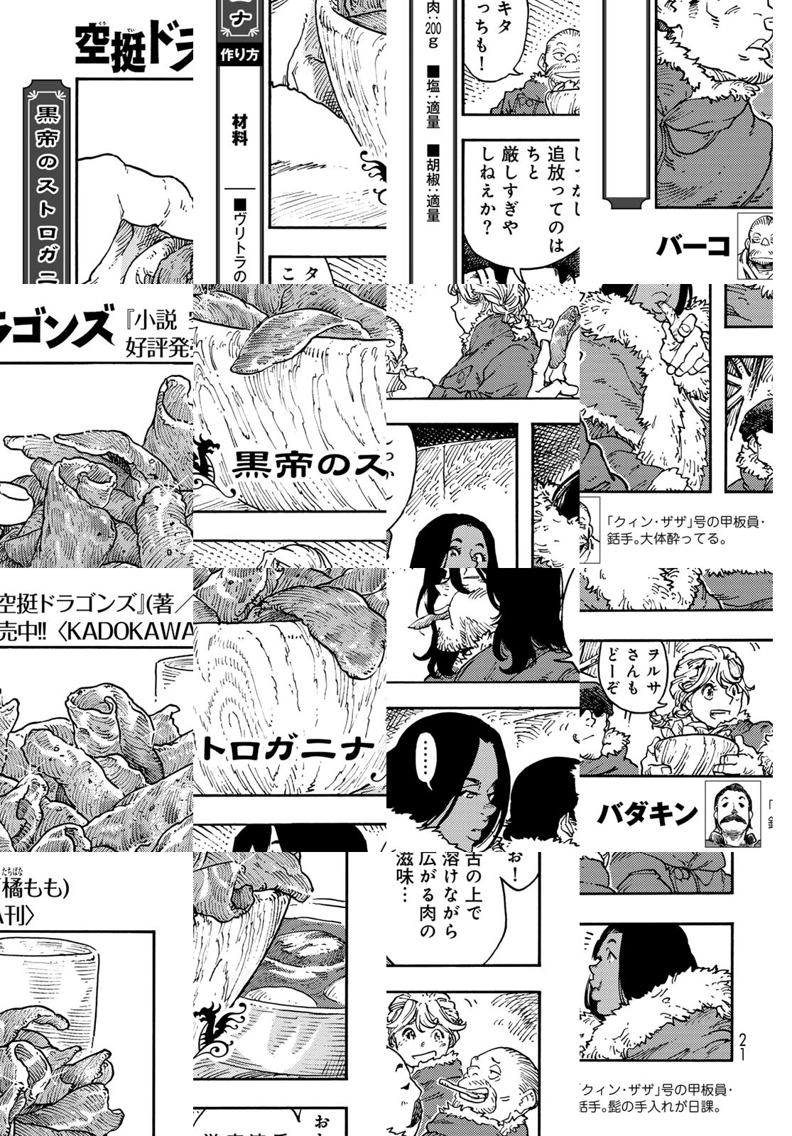 龍を追って、世界の空を往く捕龍船『クィン・ザザ号』。大物を捕まえれば一獲千金、獲りたての肉も食べ放題。でも、失敗したらもちろんお陀仏。空と龍に魅せられた乗組員たちの大冒険の旅&世界グルメ紀行!