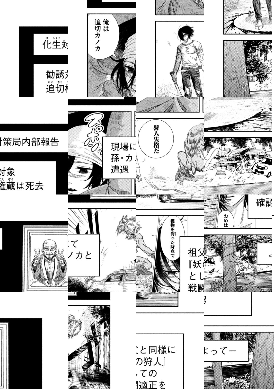 化生──かつて妖怪と呼ばれた異形の生物。化生対策局に所属する三廻部 巡(みくるべ・めぐり)が出会ったのはマタギの青年・追切カノカ。現代に残されたマタギは、化生対策局の“妖の狩人”として国家規模の怪異災害を刃を向ける。現代日本の妖狩譚、開刃。