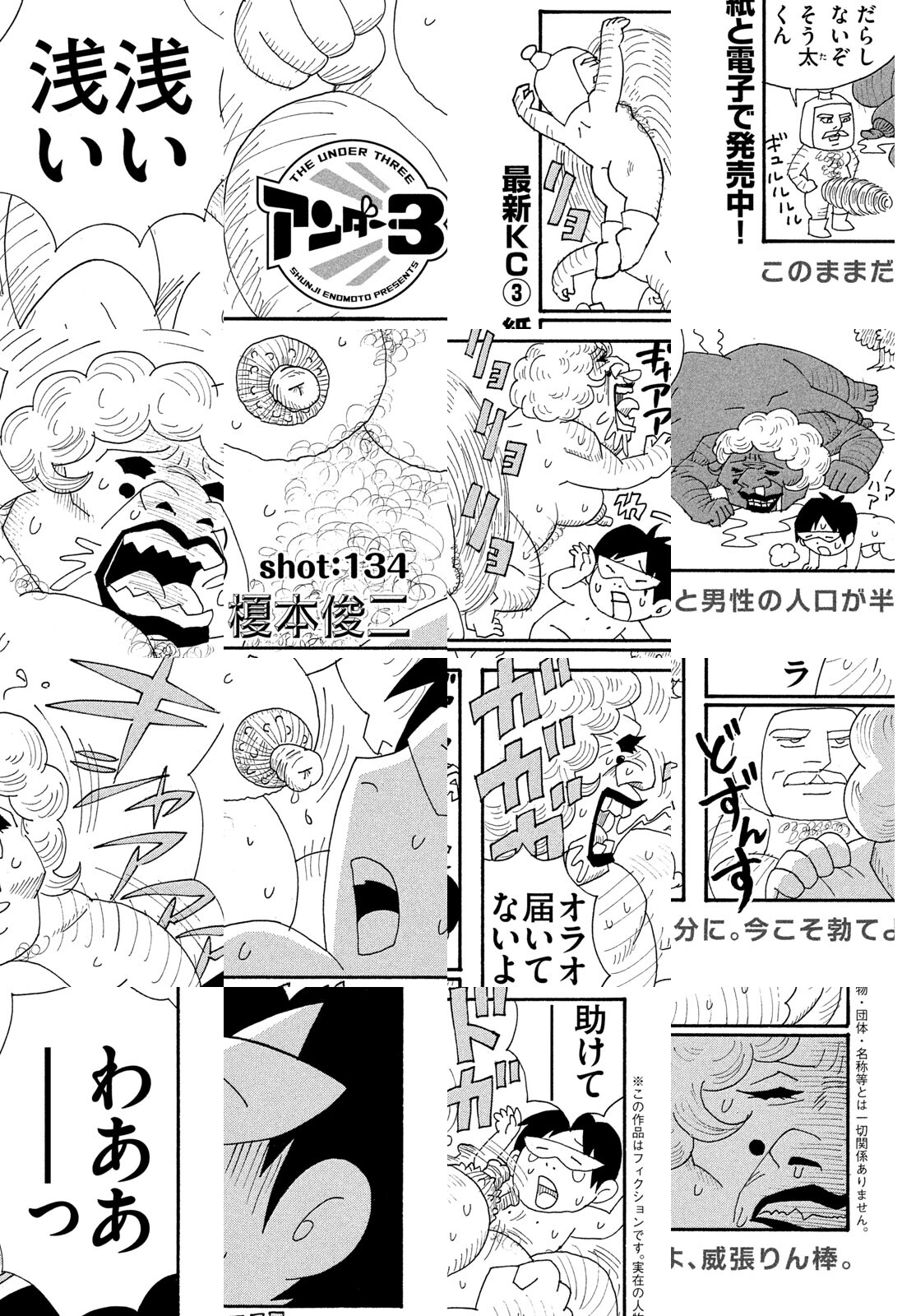 ずのーん!ジャスジャス!ザーン!バローム! 孤高のショート職人・榎本俊二が放出する濃密ギャグ! ミツオ&そう太&マリヨ、品性ゼロ以下の3人組が縦横無尽にかけまわる大活劇! アディオス、アミーゴ。