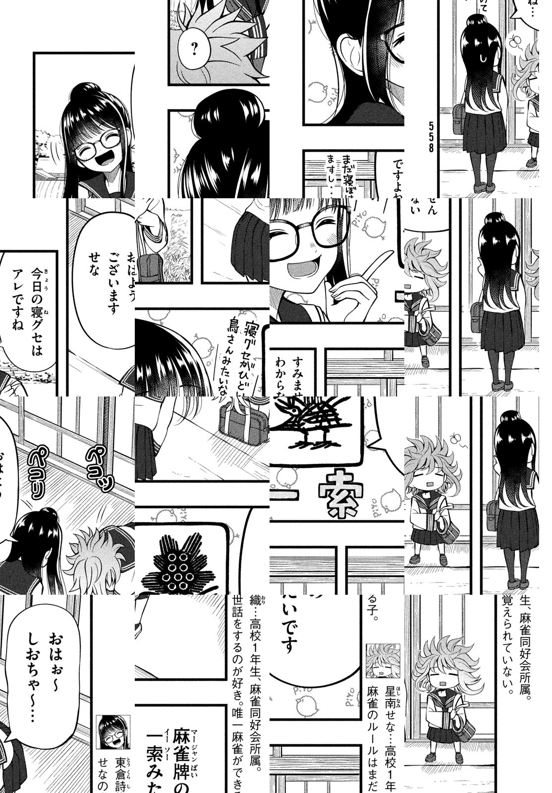 高校に入学したせなと詩織は、仲良しの先輩、棗と小町が所属する麻雀同好会に入会しようと意気込んでいた。しかし! 麻雀同好会は廃部の危機に瀕していた!…その理由は誰も麻雀ができないから!? 彼女たちは同好会を守るため、麻雀ルールを覚えられるのか?