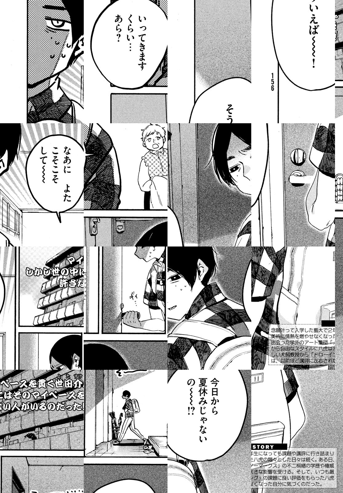 成績優秀かつスクールカースト上位の充実した毎日を送りつつ、どこか空虚な焦燥感を感じて生きる高校生・矢口八虎(やぐち やとら)は、ある日、一枚の絵に心奪われる。その衝撃は八虎を駆り立て、美しくも厳しい美術の世界へ身を投じさせていく。美術のノウハウうんちく満載、美大を目指して青春を燃やすスポ根受験物語、八虎と仲間たちは「好きなこと」を支えに未来を目指す!