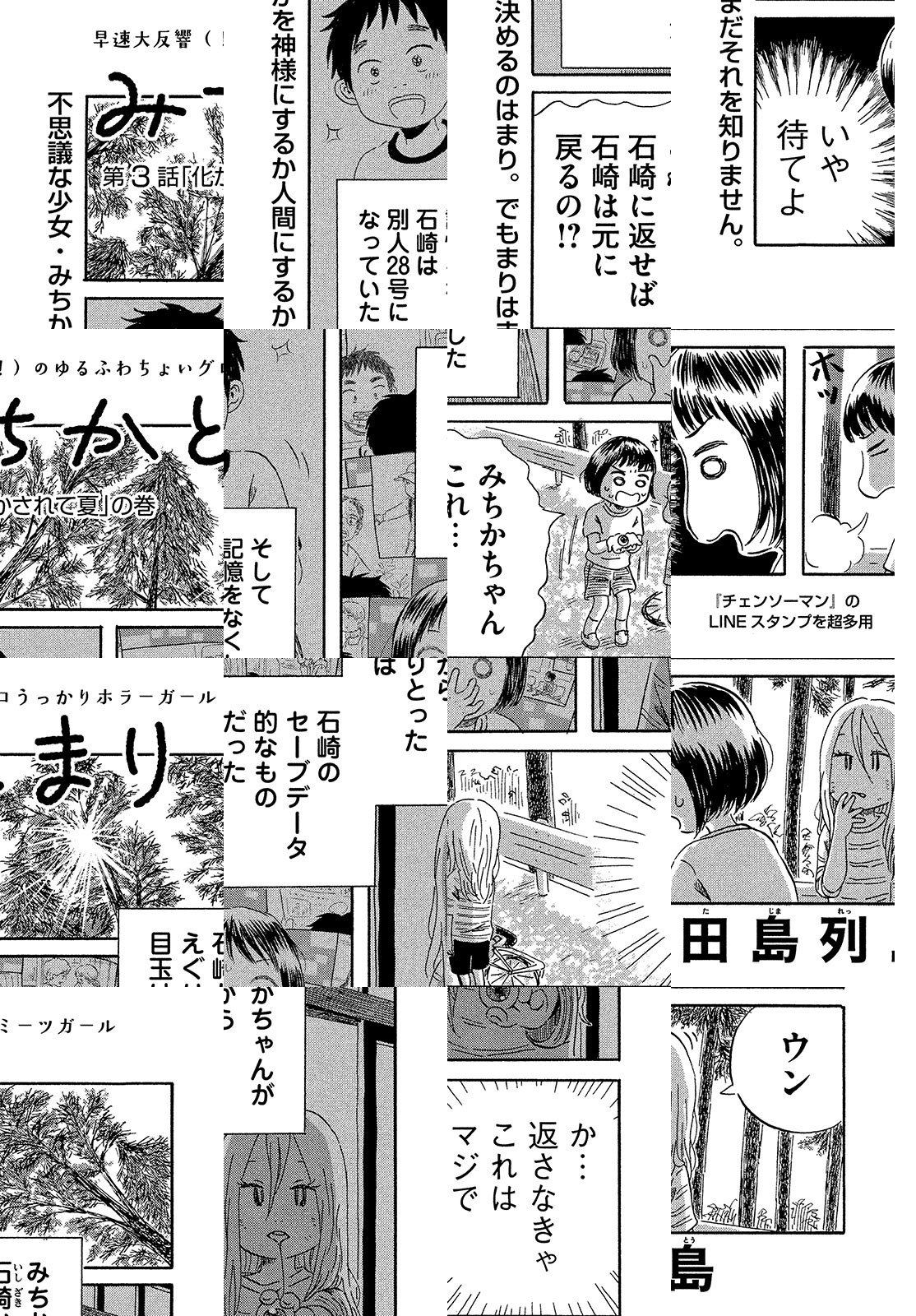 「竹やぶに生えてた子供を、神様にするか人間にするか決めるのは、最初にみつけた人間なんだよ」 8歳の女の子まりはある日、竹やぶでみちかと出会う。みちかが次々と起こす不思議な出来事のおかげで、まりの世界はこれまでと一変してしまうのだった。『子供はわかってあげない』『水は海に向かって流れる』の異才・田島列島が贈る、ゆるふわちょいグロ神話風味ガールミーツガールが開幕。