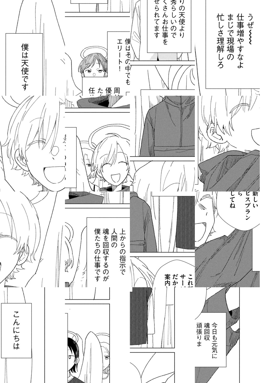 【アフタヌーン四季賞2022夏 準入選】15歳の花菜が、トラックに轢かれて死ぬ直前、天使が迎えに来る。天使は花菜の積んできた徳に対して「思い残しゼロサービス」を提案するが…。