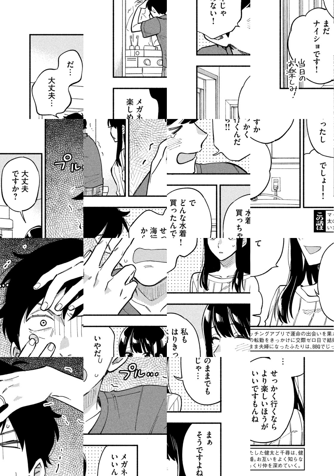 マッチングアプリで運命の出会いを果たした、健太と千尋。奥手すぎて最初の一歩を踏み出せずにいるふたりが、健太の浜松への転勤をきっかけに急進展。なんと…交際ゼロ日で結婚することに! お互いをよく知らないまま夫婦になったふたりは、毎週末のBBQでじっくり仲を深めていく――。じっくり育てるスローな週末新婚BBQライフ、始めます!