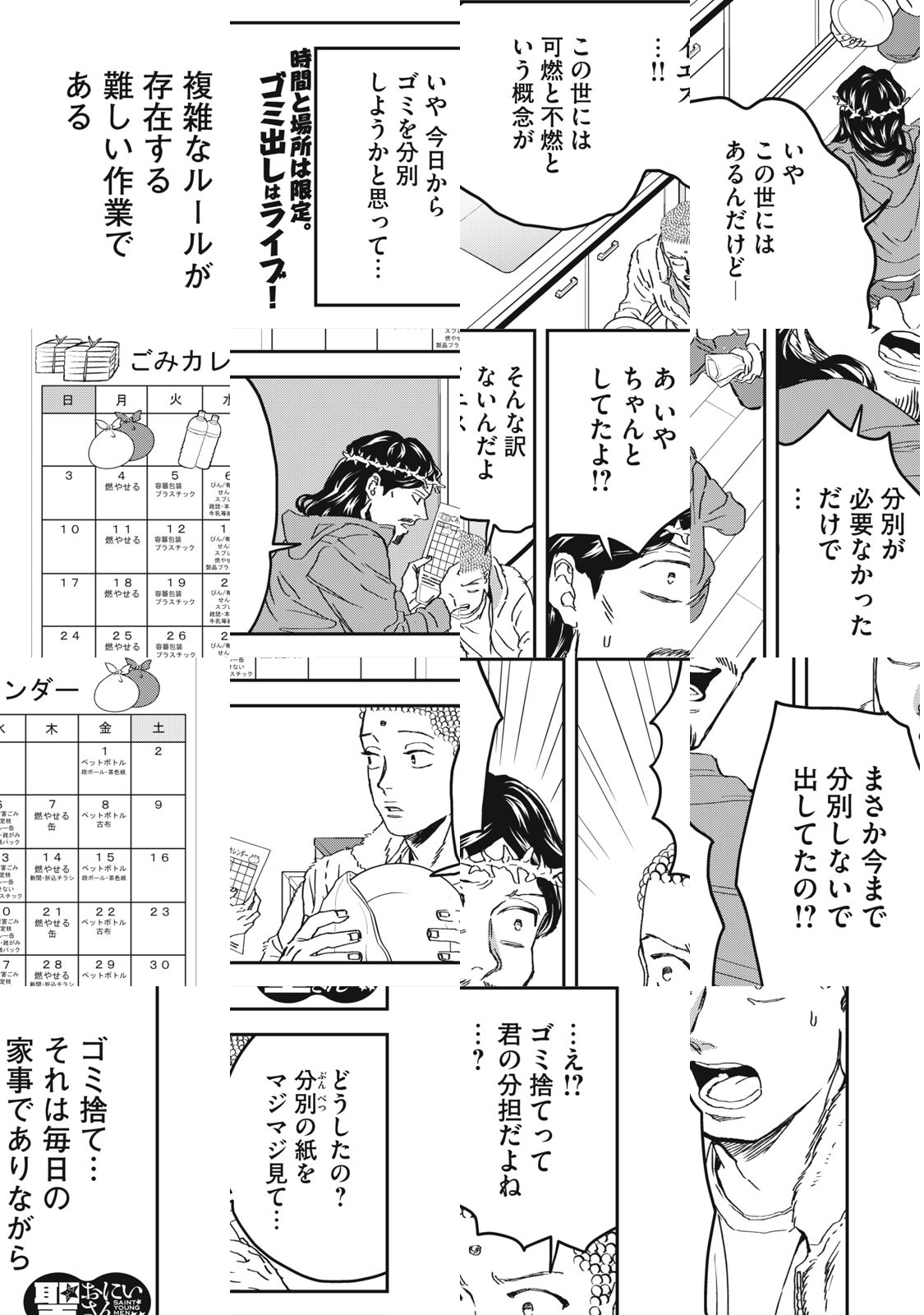 目覚めた人ブッダ、神の子イエス。世紀末を無事に越えた二人は、東京・立川でアパートをシェアし、下界でバカンスを過ごしていた。近所のおばあちゃんのように、細かいお金を気にするブッダ。衝動買いが多いイエス。そんな“最聖”コンビの立川デイズ。