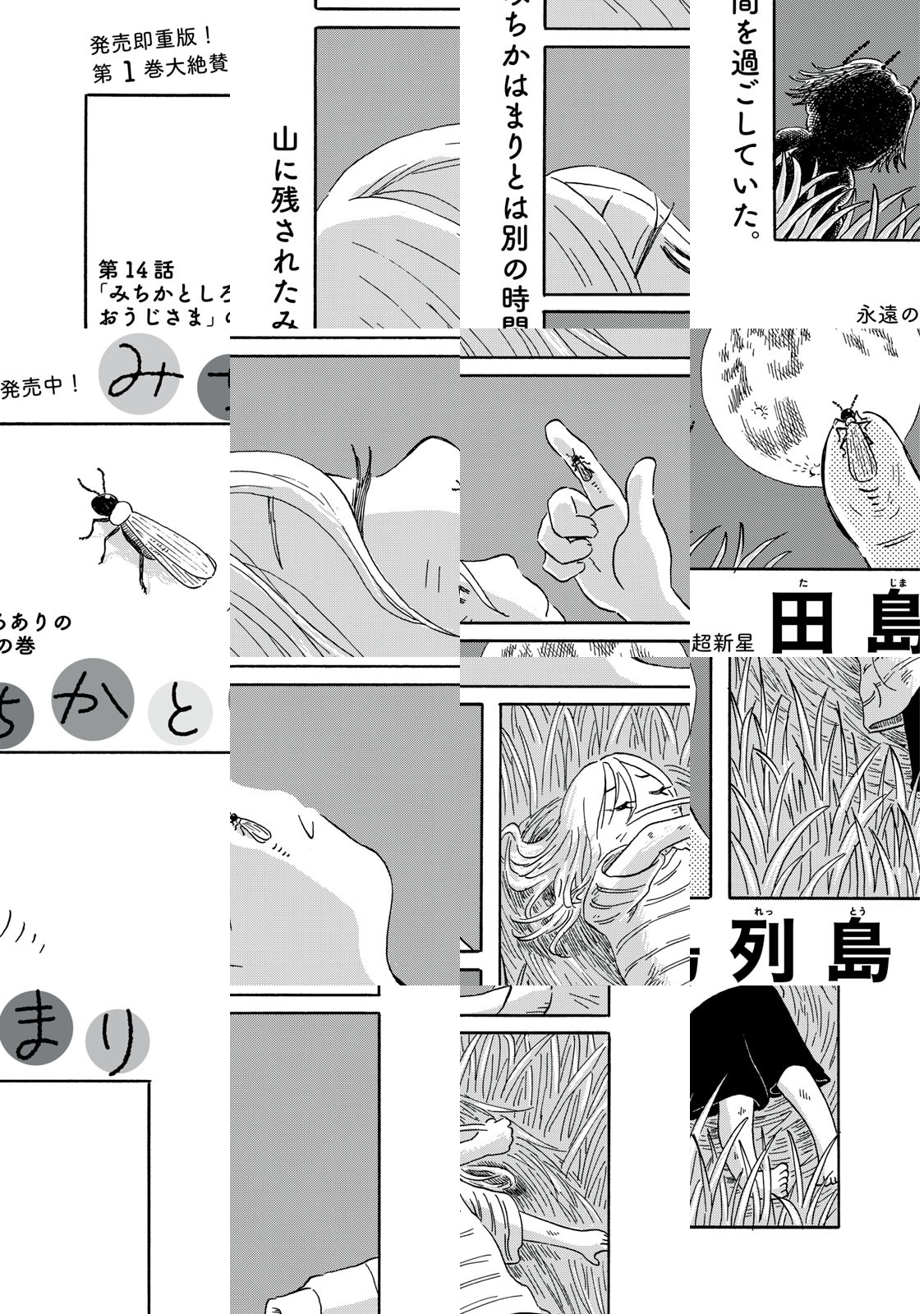 「竹やぶに生えてた子供を、神様にするか人間にするか決めるのは、最初にみつけた人間なんだよ」 8歳の女の子まりはある日、竹やぶでみちかと出会う。みちかが次々と起こす不思議な出来事のおかげで、まりの世界はこれまでと一変してしまうのだった。『子供はわかってあげない』『水は海に向かって流れる』の異才・田島列島が贈る、ゆるふわちょいグロ神話風味ガールミーツガールが開幕。