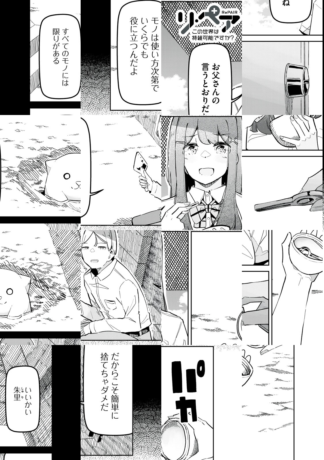 身の回りにあふれる"壊れたもの"。捨てるでも買い替えるでもなく、それらを修理しながらひとつ屋根の下に暮らす朱里とナオトだが――!? 仕組みがわかれば直してあげられる、モノを大事にしたくなるリペア生活!