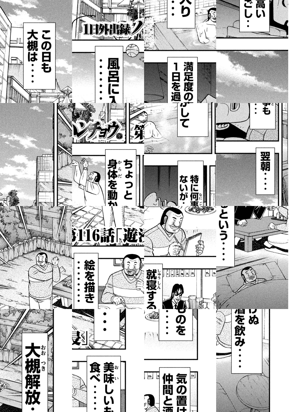 地の獄・・! 底の底・・! 帝愛地下労働施設・・! 劣悪な環境である地下にいながら「1日外出券」を使い、地上で贅の限りを尽くす男がいた・・! その名は大槻・・! E班・班長にして、1日を楽しみ尽くす匠・・! 飲んで食って大満喫・・! のたり楽しむ大槻を描く、飯テロ・スピンオフ・・!