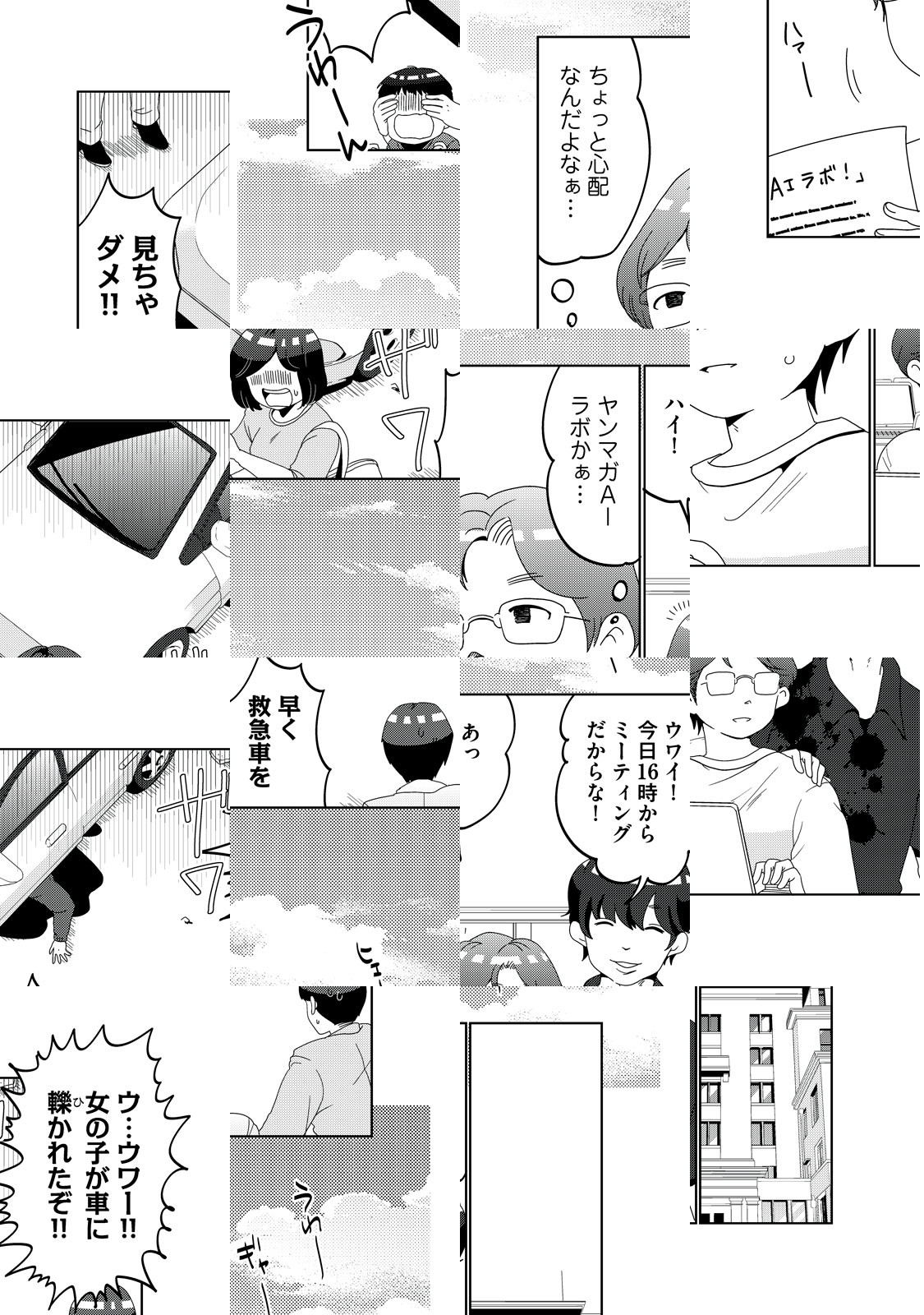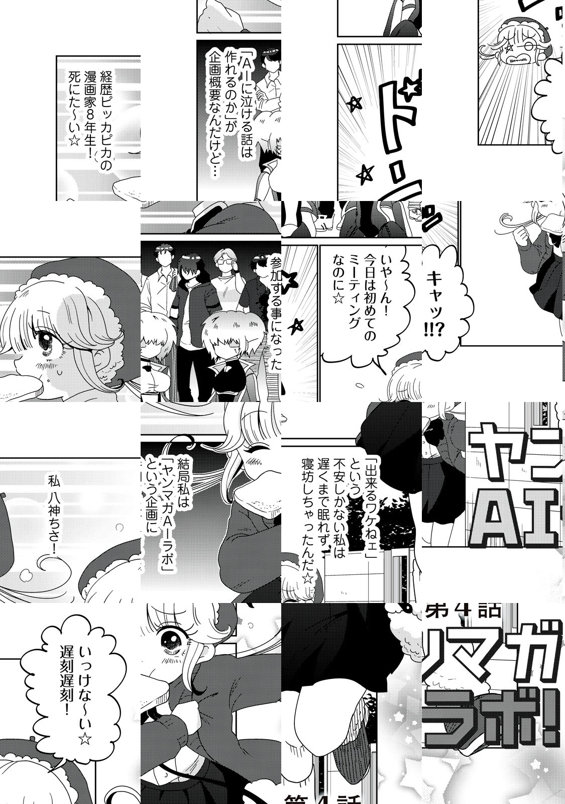 AI(人工知能)に泣ける話は作れるのか!? AIによる漫画STORY開発の全貌と裏側に迫るルポマンガ「ヤンマガAIラボ!」。漫画家・八神ちさが実際に目で見て、耳で聞き、肌で感じた現場の雰囲気を、大いなる脚色とともにお届けします!!