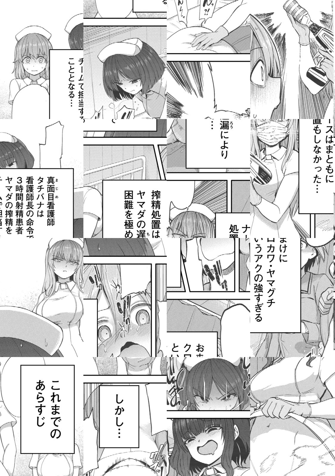 看護師って大変だ!!タチバナ視点で新たにおくるドタバタ医療ブラックコメディ!!真面目な看護師タチバナは悩んでいた。日々の看護業務に加え、「3時間おきに射精しないと金玉に激痛が走る患者」の搾精介助をしろと命じられたのだ。しかも供に介助する部下たちは病院でも指折りの性格破綻者たち。これは日本医療の崩壊と疲弊していく看護師たちの嘆きを描いたブラック医療コメディであるーー。