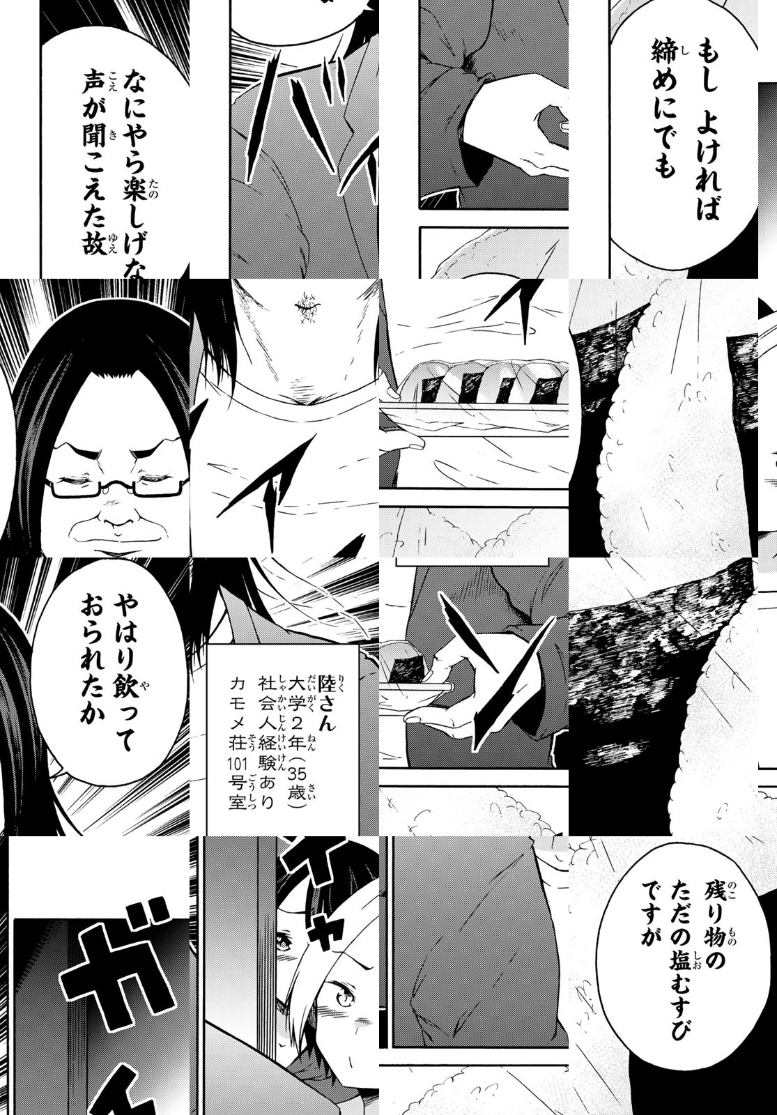 カモメ大学に通う五十鈴は、お酒が大好きな女子大学生。夜な夜な隣の部屋に住む日向さんや、同じアパートの住民達と飲み会をしているが、彼女たちの""ツマミ""はちょっとだけ特殊なようで……?己の力で宴を彩れ! ヘンテコ大学生たちによる、アルコールキャンパスライフ開幕!
