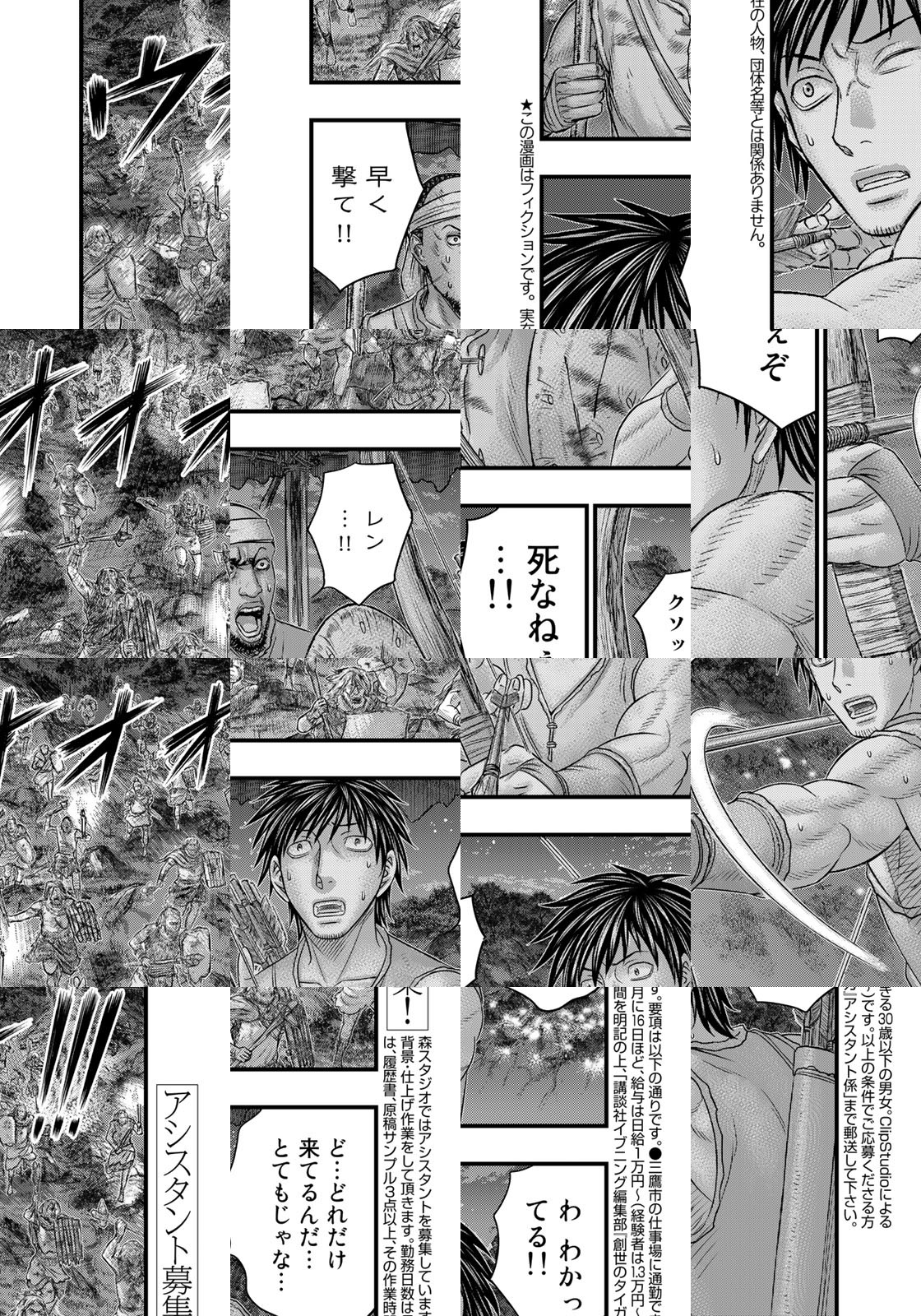 彼女にフラれ生きている実感の乏しい青年タイガ。大学の文化人類学のゼミ仲間とオーストラリアへ卒業旅行に出かけた彼は偶然入った洞窟で観光ガイドにも載っていない古代の壁画を発見する。直後に起こった崩落からからくも逃れた彼らは入り口とは別の穴から外に出るがそこはマンモスや古代の巨大哺乳類が跋扈する世界だった。「ホーリーランド」「自殺島」リアルな人間を描かせたら右に出るもののいない森恒二の最新作。