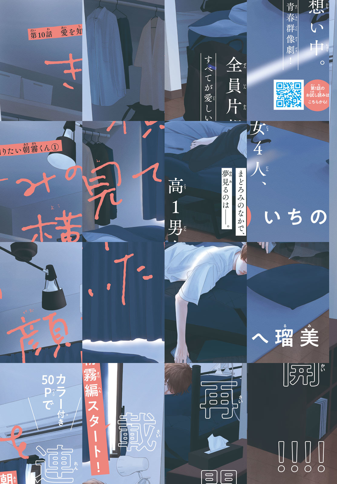 高1男女4人、全員が主人公の青春群像劇! 1人目の主人公は平凡を極めた高校1年生の光。恋愛とは縁遠く、親友の美少女・麻里に見合う男子を妄想する日々。そんなある日、麻里の相手役として妄想していたクラスのムードメーカー・大谷くんと学年一のイケメン・朝霧くんから話しかけられて――。4人の恋と友情がはじまる!