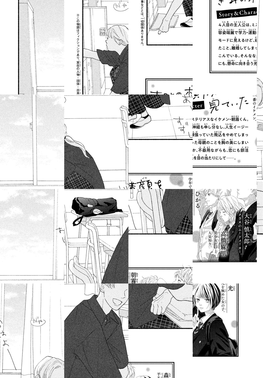 高1男女4人、全員が主人公の青春群像劇! 1人目の主人公は平凡を極めた高校1年生の光。恋愛とは縁遠く、親友の美少女・麻里に見合う男子を妄想する日々。そんなある日、麻里の相手役として妄想していたクラスのムードメーカー・大谷くんと学年一のイケメン・朝霧くんから話しかけられて――。4人の恋と友情がはじまる!