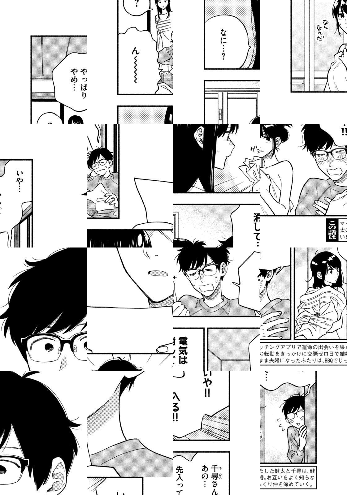 マッチングアプリで運命の出会いを果たした、健太と千尋。奥手すぎて最初の一歩を踏み出せずにいるふたりが、健太の浜松への転勤をきっかけに急進展。なんと…交際ゼロ日で結婚することに! お互いをよく知らないまま夫婦になったふたりは、毎週末のBBQでじっくり仲を深めていく――。じっくり育てるスローな週末新婚BBQライフ、始めます!