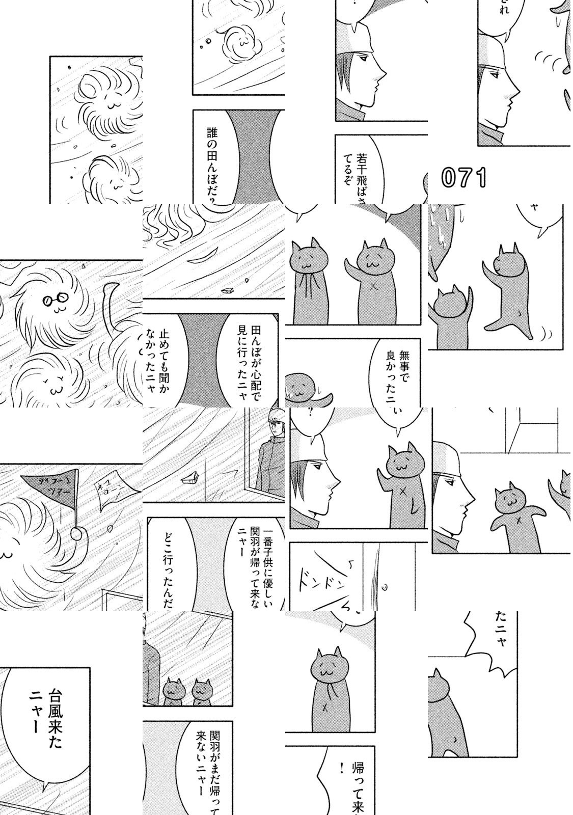 日本のどこかの道ばたにロシアンブルーがすてられていました。出会いをまちわびるうち、捨て猫は三びきにふえていました。だれも彼らをひろってくれません。ところが神様は猫たちを決してみすてませんでした。猫耳の帽子をかぶった無気力で無表情でブラブラしている若者が、三びきの新しい同居人、あるいはお父さんとなったのです。若者の名前は却津山春雄(きゃつやまはるお)、通称・キャッツ。捨て猫たちと若者の熱い友情がきっとみなさんの胸をうつことでしょう。ご家族そろってどうぞ『クレムリン』を応援してください。 【あらすじ】大学生という名の無職・却津山春雄は道ばたに捨てられていたロシアンブルーを無慈悲にも黙殺するが,小さな命は『南極物語』のタロ・ジロさながらにたくましく一冬を耐え抜いたのであった。却津山は猫三匹との同居を決意。強くしたたかに生きてほしいとの願いを込め、歴史上の英雄にあやかり、総称「関羽」と命名する。度重なる挫折のために深く絶望した却津山の魂は少しずつ癒され……。