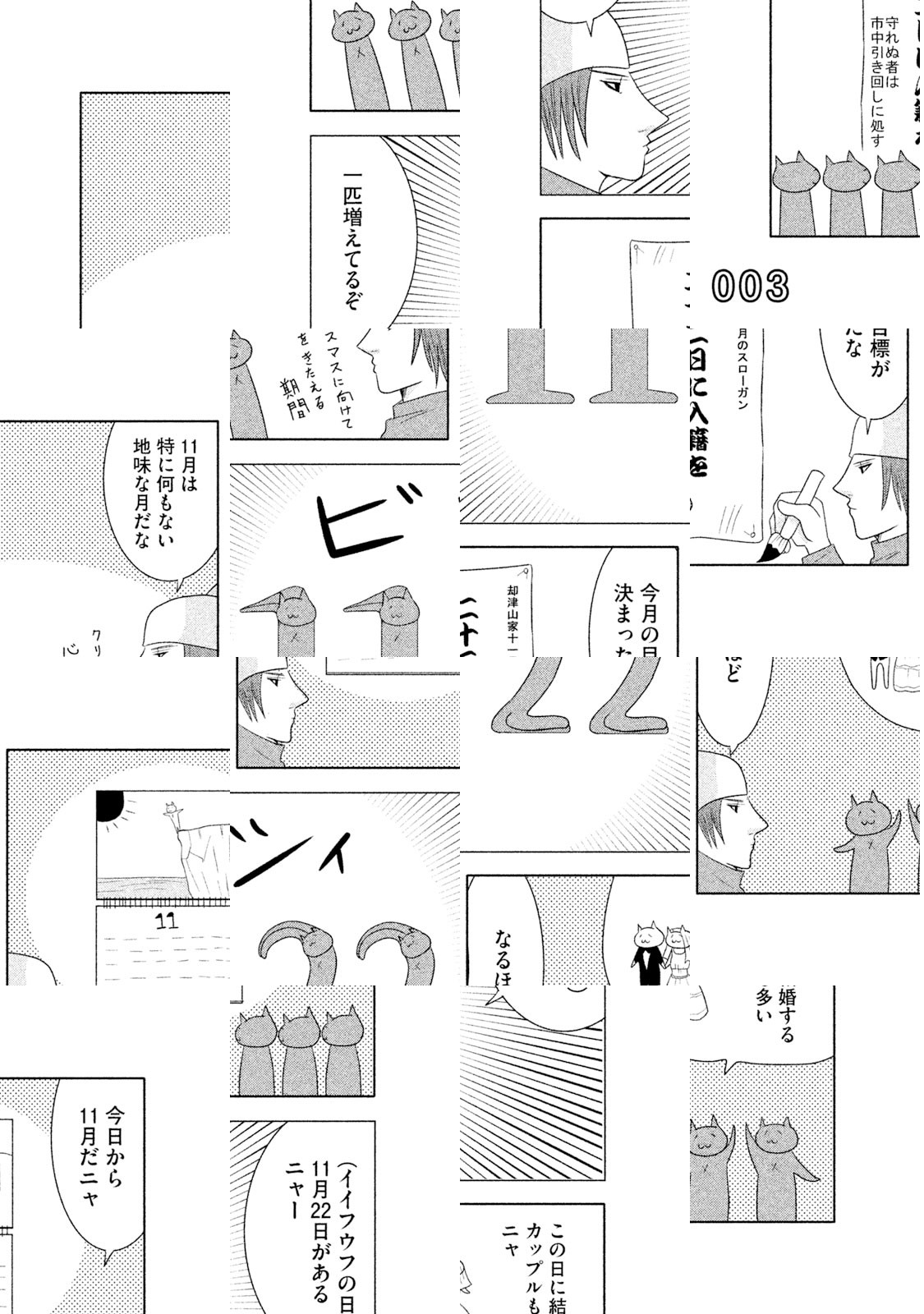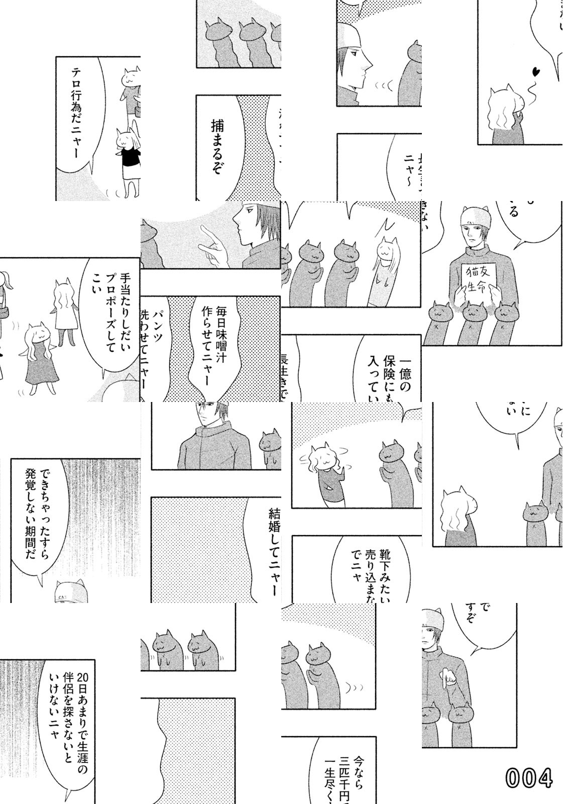 日本のどこかの道ばたにロシアンブルーがすてられていました。出会いをまちわびるうち、捨て猫は三びきにふえていました。だれも彼らをひろってくれません。ところが神様は猫たちを決してみすてませんでした。猫耳の帽子をかぶった無気力で無表情でブラブラしている若者が、三びきの新しい同居人、あるいはお父さんとなったのです。若者の名前は却津山春雄(きゃつやまはるお)、通称・キャッツ。捨て猫たちと若者の熱い友情がきっとみなさんの胸をうつことでしょう。ご家族そろってどうぞ『クレムリン』を応援してください。 【あらすじ】大学生という名の無職・却津山春雄は道ばたに捨てられていたロシアンブルーを無慈悲にも黙殺するが,小さな命は『南極物語』のタロ・ジロさながらにたくましく一冬を耐え抜いたのであった。却津山は猫三匹との同居を決意。強くしたたかに生きてほしいとの願いを込め、歴史上の英雄にあやかり、総称「関羽」と命名する。度重なる挫折のために深く絶望した却津山の魂は少しずつ癒され……。