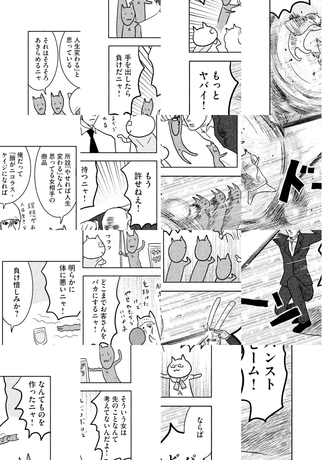日本のどこかの道ばたにロシアンブルーがすてられていました。出会いをまちわびるうち、捨て猫は三びきにふえていました。だれも彼らをひろってくれません。ところが神様は猫たちを決してみすてませんでした。猫耳の帽子をかぶった無気力で無表情でブラブラしている若者が、三びきの新しい同居人、あるいはお父さんとなったのです。若者の名前は却津山春雄(きゃつやまはるお)、通称・キャッツ。捨て猫たちと若者の熱い友情がきっとみなさんの胸をうつことでしょう。ご家族そろってどうぞ『クレムリン』を応援してください。 【あらすじ】大学生という名の無職・却津山春雄は道ばたに捨てられていたロシアンブルーを無慈悲にも黙殺するが,小さな命は『南極物語』のタロ・ジロさながらにたくましく一冬を耐え抜いたのであった。却津山は猫三匹との同居を決意。強くしたたかに生きてほしいとの願いを込め、歴史上の英雄にあやかり、総称「関羽」と命名する。度重なる挫折のために深く絶望した却津山の魂は少しずつ癒され……。