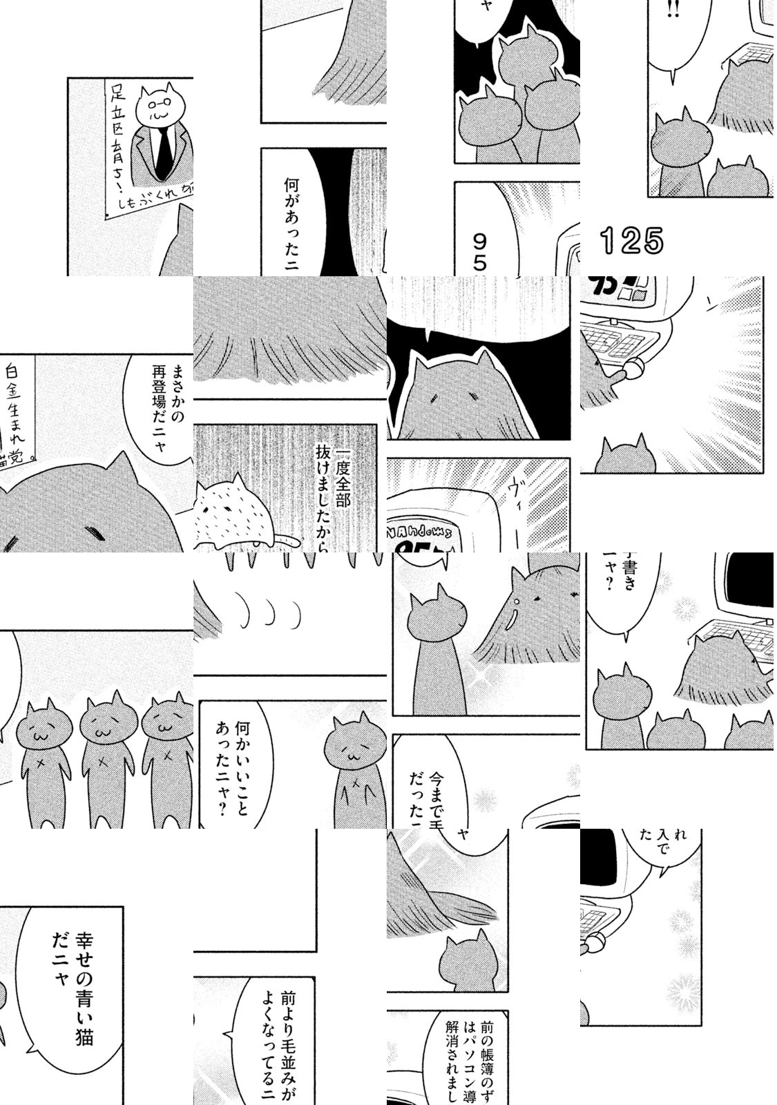 日本のどこかの道ばたにロシアンブルーがすてられていました。出会いをまちわびるうち、捨て猫は三びきにふえていました。だれも彼らをひろってくれません。ところが神様は猫たちを決してみすてませんでした。猫耳の帽子をかぶった無気力で無表情でブラブラしている若者が、三びきの新しい同居人、あるいはお父さんとなったのです。若者の名前は却津山春雄(きゃつやまはるお)、通称・キャッツ。捨て猫たちと若者の熱い友情がきっとみなさんの胸をうつことでしょう。ご家族そろってどうぞ『クレムリン』を応援してください。 【あらすじ】大学生という名の無職・却津山春雄は道ばたに捨てられていたロシアンブルーを無慈悲にも黙殺するが,小さな命は『南極物語』のタロ・ジロさながらにたくましく一冬を耐え抜いたのであった。却津山は猫三匹との同居を決意。強くしたたかに生きてほしいとの願いを込め、歴史上の英雄にあやかり、総称「関羽」と命名する。度重なる挫折のために深く絶望した却津山の魂は少しずつ癒され……。